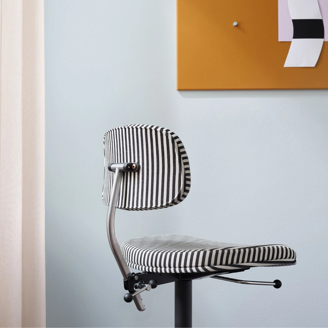 The Kevi 2533 office chair by designer Jørgen Rasmussen has a 5-arm swivel aluminum base. It was first presented in 1958.
