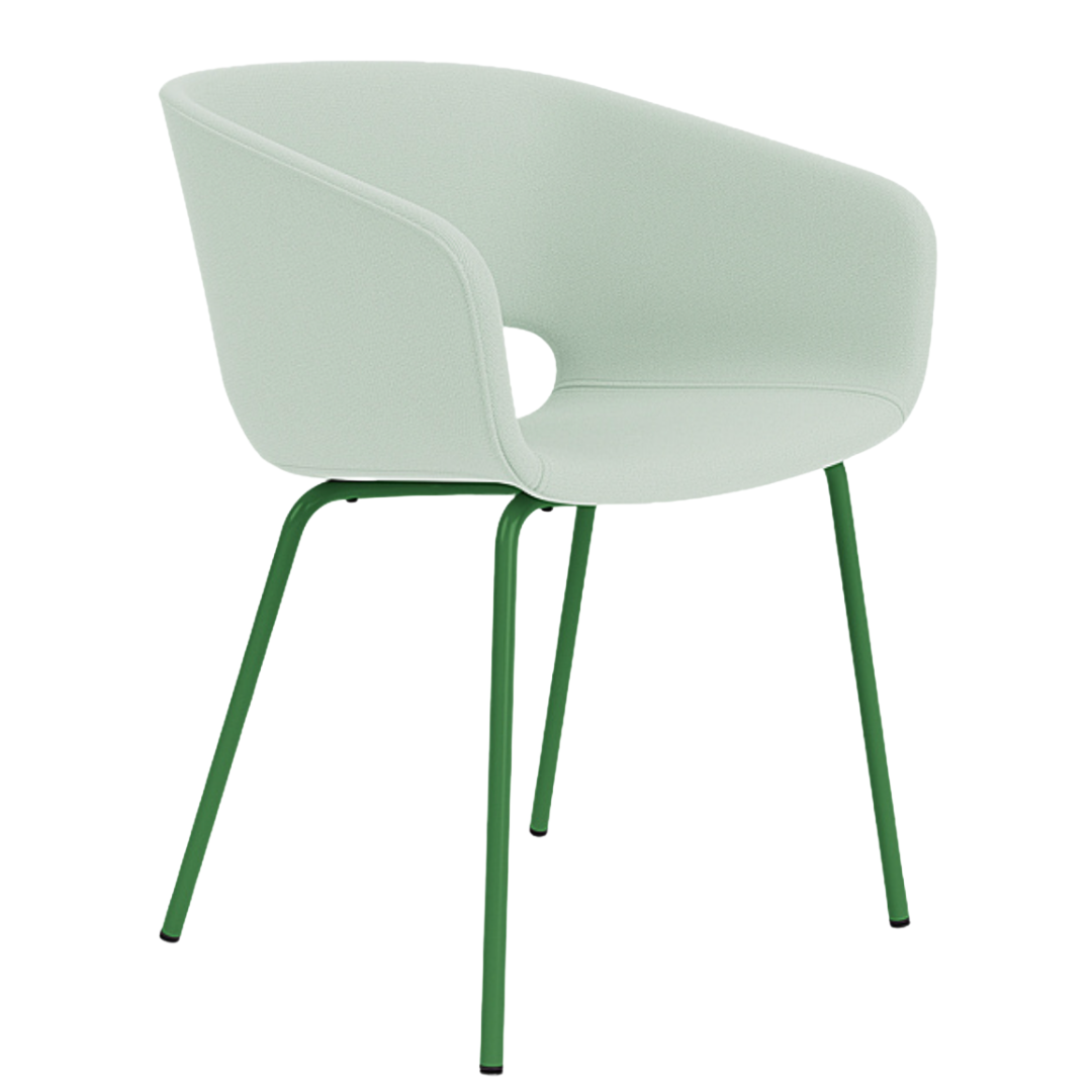 Material: The Marée 401 Dining chair has a seat made in 100% recycled plastic upholstered in textile and legs in a lacquered finish.