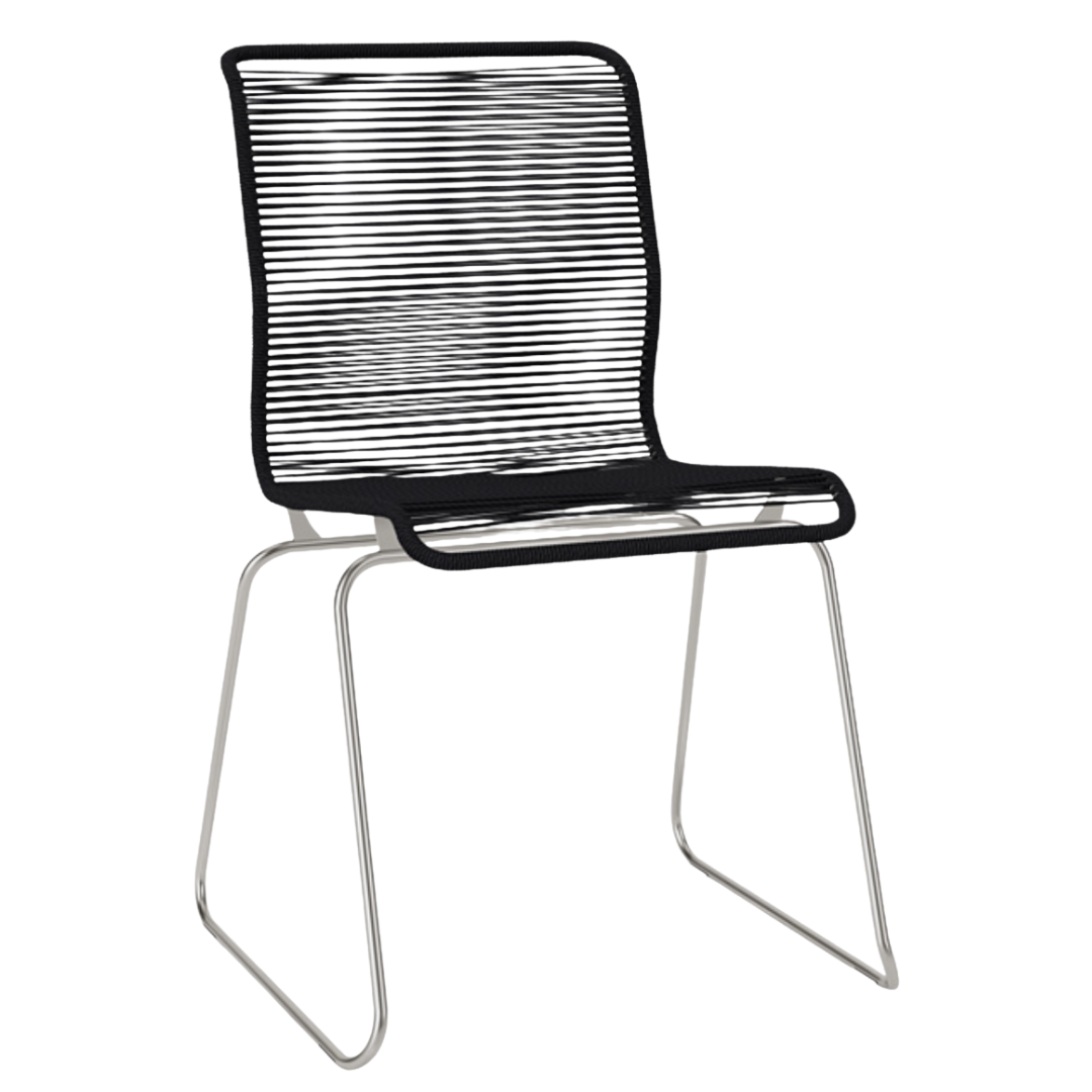 The frame of the Panton One chair is made of black steel. The special feature: The seat and back are woven by hand. The used black polyurethane cord has a nylon core. The cord is also UV protected. The Montana chairs are designed for a load of up to 150 kilograms.