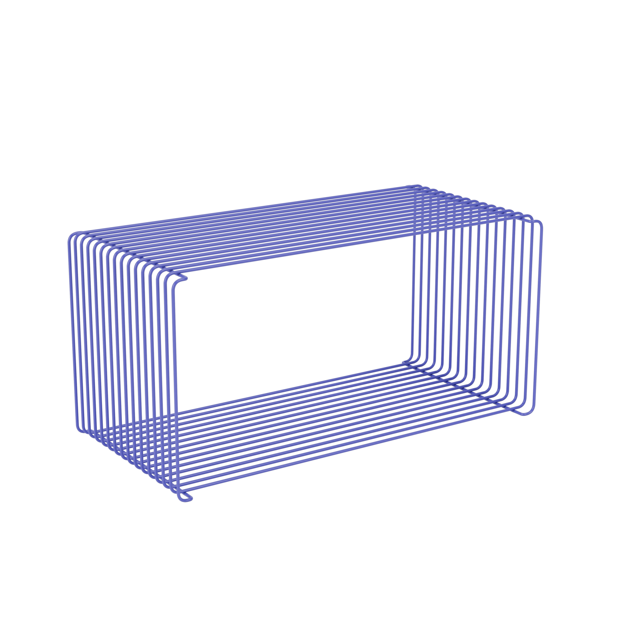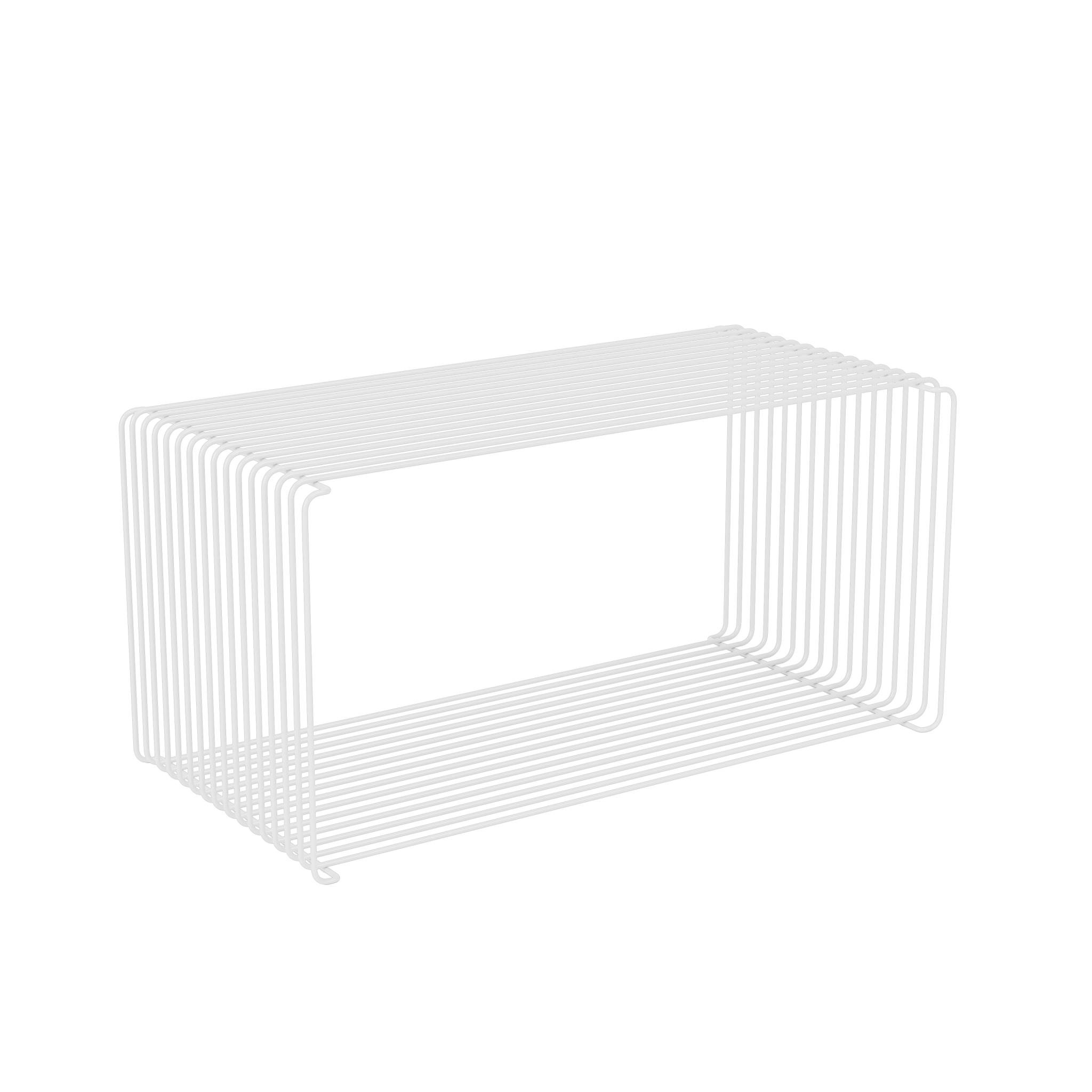 The storage/shelf system is characterized by simple, flowing shapes and versatile adaptability. The Panton Wire modules are made of bent steel wire and are available in different colors and sizes.