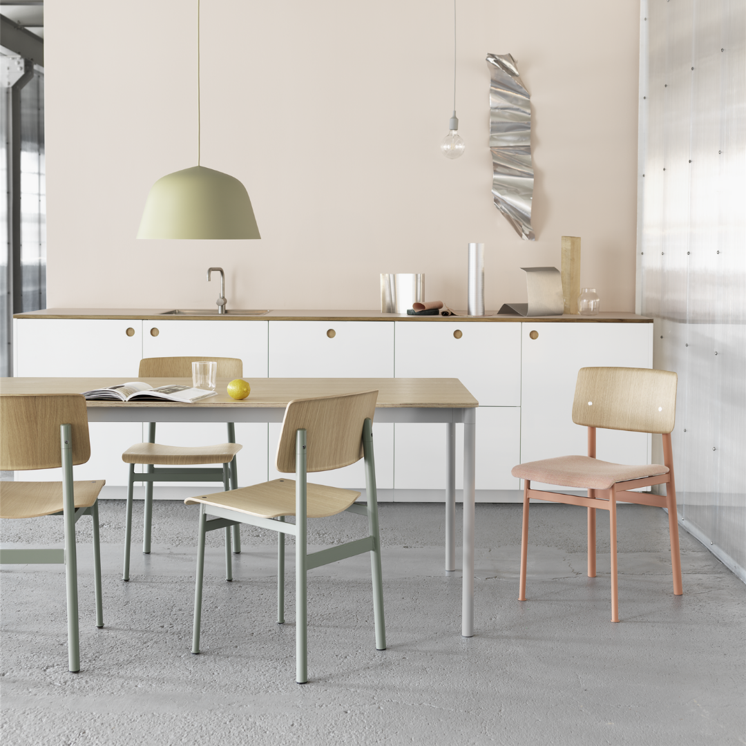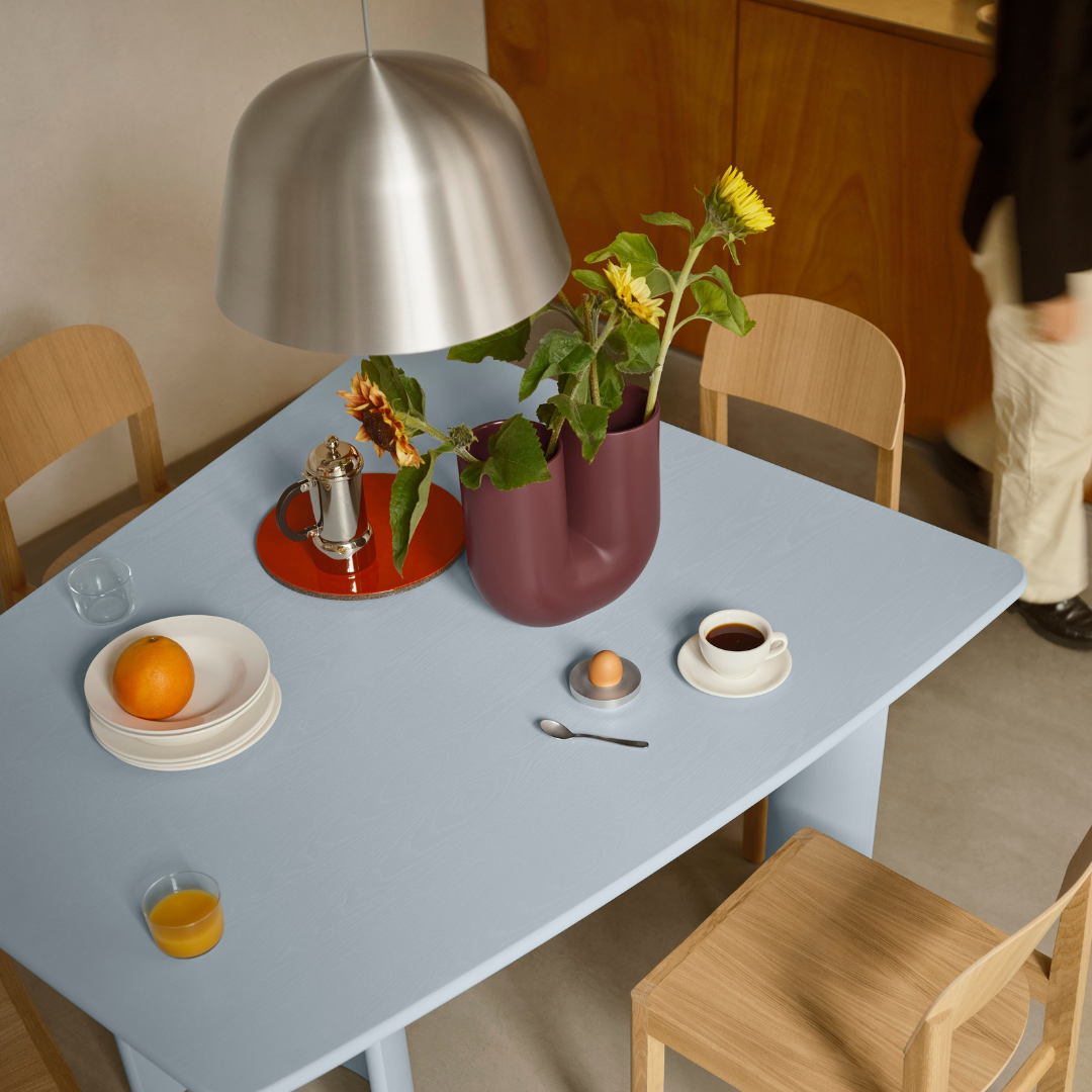 The Ambit pendant lamp is a modern and timeless design and has a truly Scandinavian look. This minimalist hanging lamp really fits into any living style and is available in beautiful fresh colors. The outside of the pendant lamp contrasts beautifully with the white lacquered inside of the shade, which provides maximum and warm light. This hanging lamp is part of the Muuto Ambit collection with different sizes and also an Ambit light rail and an Ambit wall lamp.