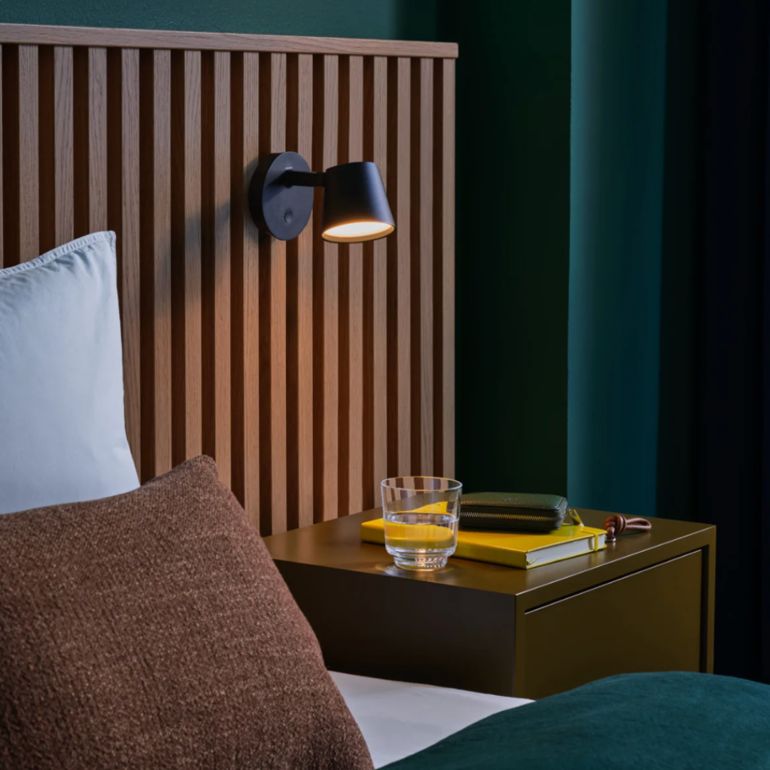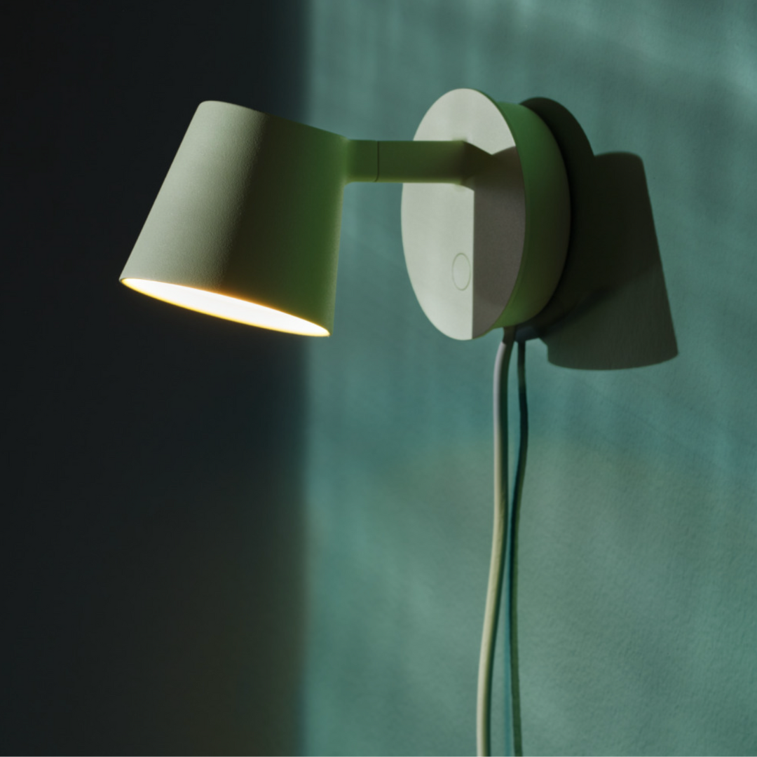 The MUUTO Tip Wall Lamp is made of cast aluminum and is currently available in black, white, copper brown or gray.