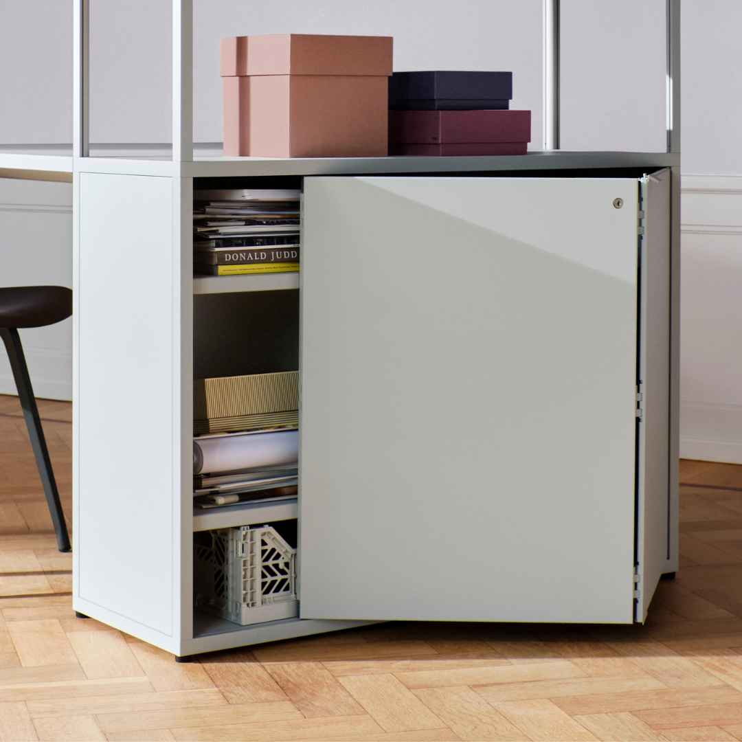 The graphic silhouette of the cabinet ensures that the furniture feels at home everywhere and can easily be combined with other styles. Different elements, materials and surfaces can be used to freely complement different furnishing styles and architectural environments, while the aluminum base structure offers uncompromising stability.