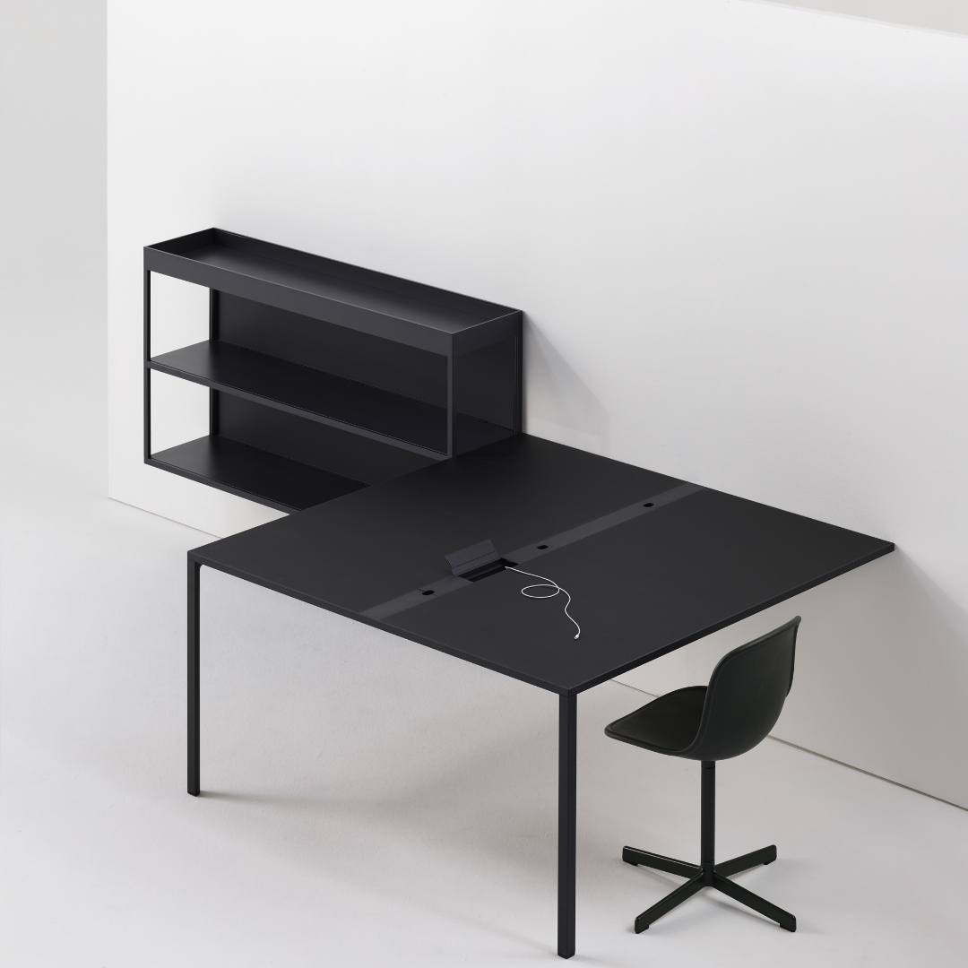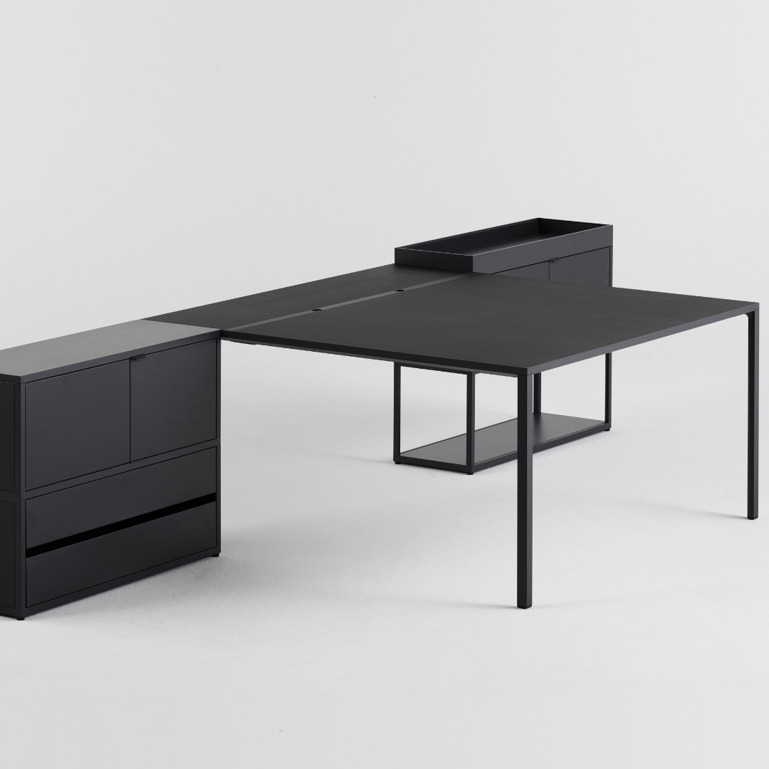 The innovative and modular system includes a series of tables, doors, drawers and panels that can be easily linked together. The concealment of cables, screens and lighting has also been considered. The New Order workplace offers endless possibilities and combinations to put together your workplace.