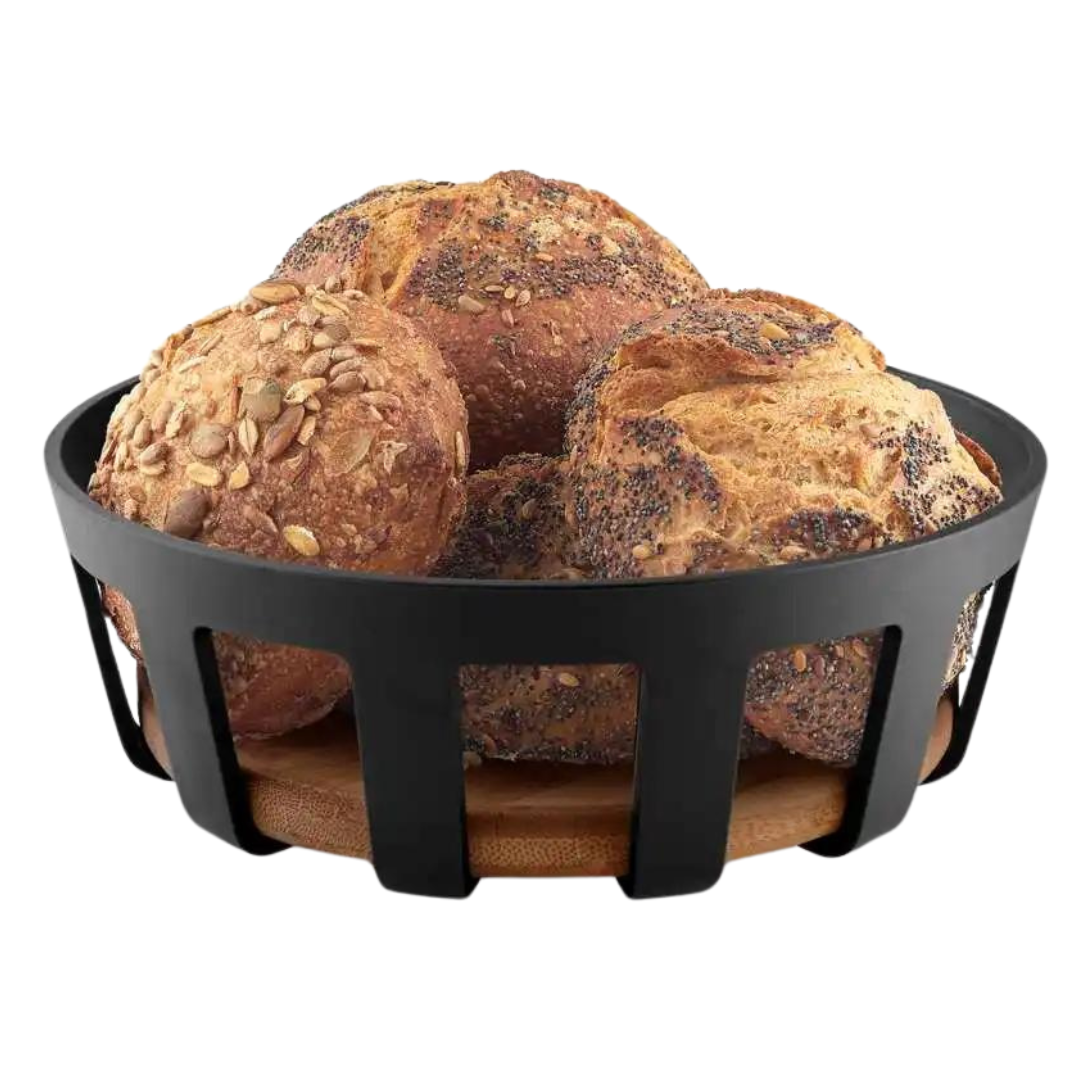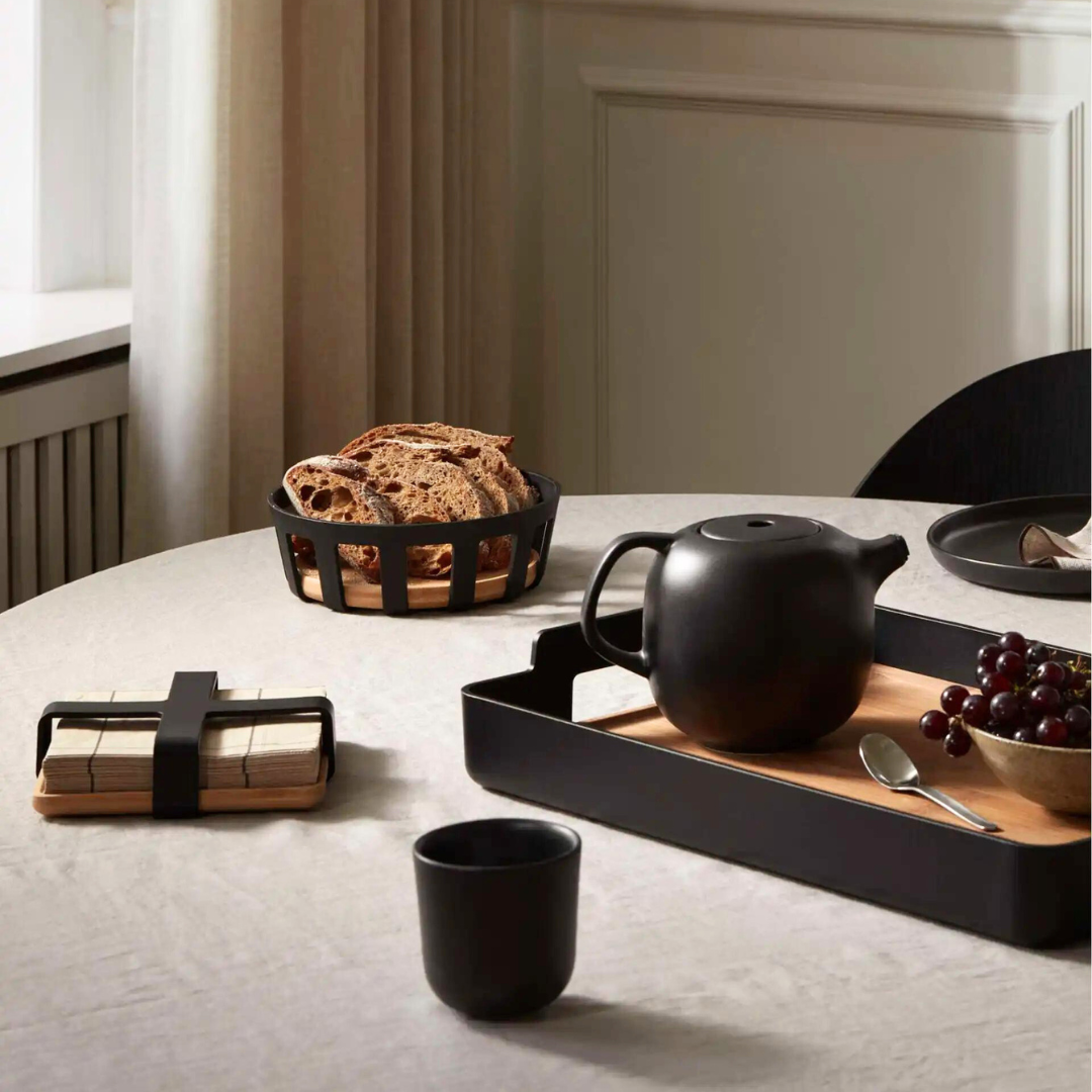 Serve your freshly baked sandwiches in a functional and attractive bread basket made of matte black plastic with FSC®️-certified bamboo. The elegant, understated and timeless design looks beautiful in your home. The basket can also be placed on the table for fresh fruit, for example.