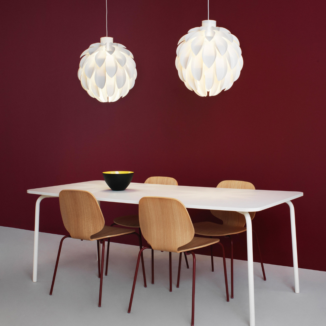 Anyone can assemble these by folding the elements - no tools or glue are required. Norm 12 is named after the year 2012 when Simon Karkov designed the lampshade. Karkov was inspired by nature and flowers, and the organic shape of the Norm 12 bears a clear resemblance to a flower. The soft diffused light, the sculptural design and the timeless, pure white color make the Norm 12 perfectly suitable for various modern interiors.