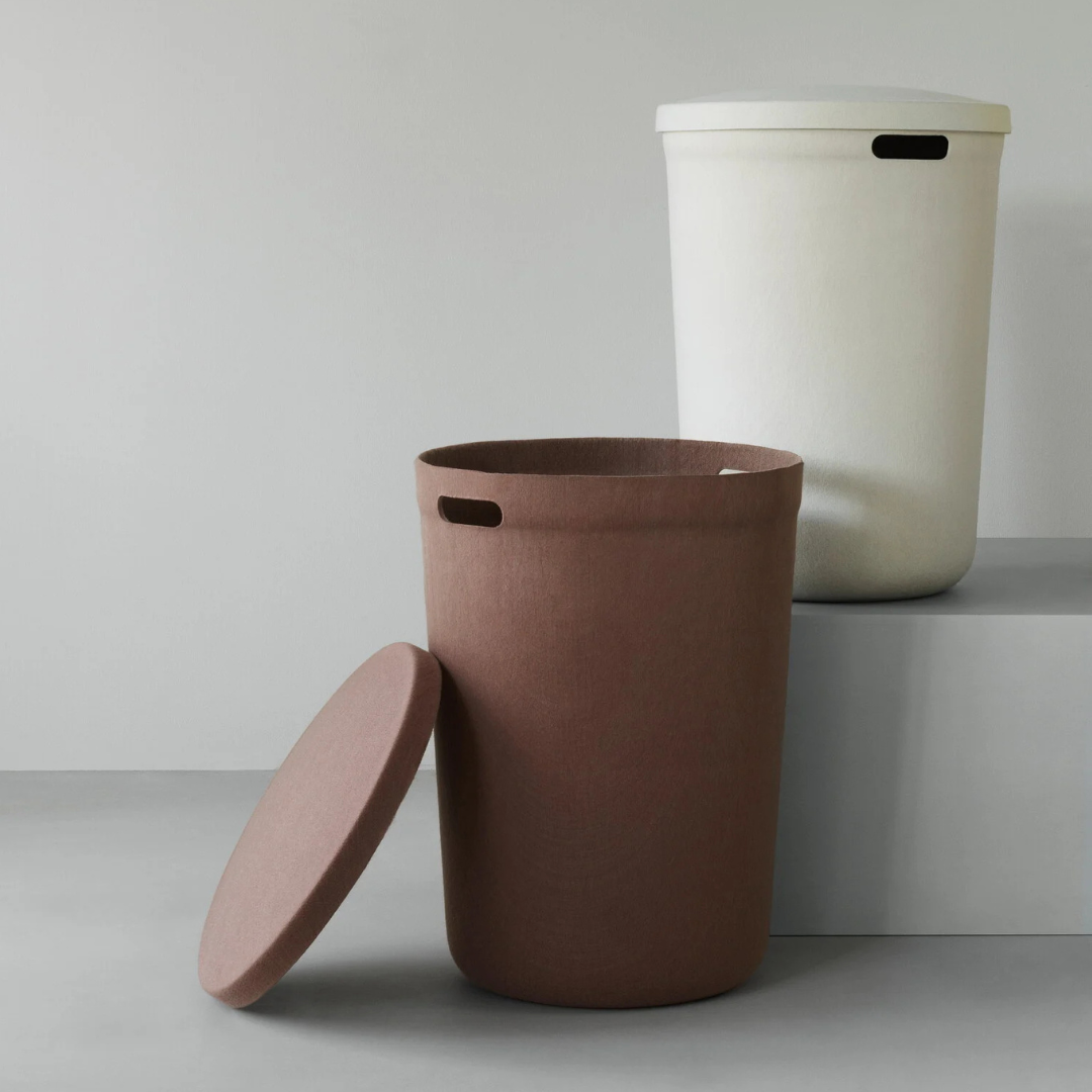 The laundry basket is made of recycled PET felt, made from reused plastic bottles. This innovative material is sturdy, lightweight, and easy to maintain, perfectly complementing Normann Copenhagen's focus on sustainability and thoughtful design. Thanks to its generous size, Hide is not only suitable for laundry but also ideal for storing throws, toys, or other home accessories.