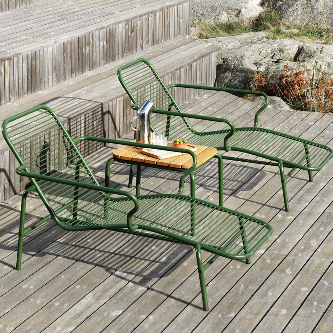 Simon Legald's trademark of honesty is evident throughout the design, which is devoid of unnecessary embellishments, with an emphasis on longevity and functionality. The use of a double powder-coated frame makes the outdoor series durable and long-lasting utensils, and perfect for a wide variety of different outdoor spaces such as terraces, balconies, patios and gardens.