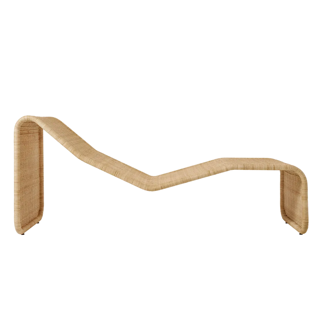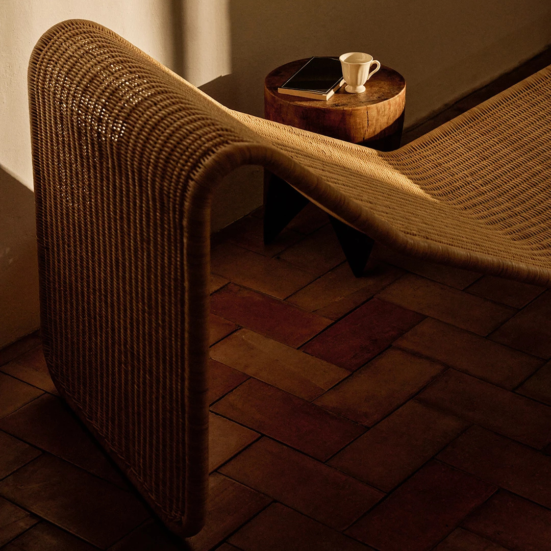 For the outdoor version, the original design has been retained, while the materials have been adapted for long-term outdoor use. The chair is crafted from galvanized steel and finished with a woven HDPE structure that mimics the look of rattan. This creates a light, airy aesthetic with a subtle rhythm, combined with excellent durability and weather resistance.
