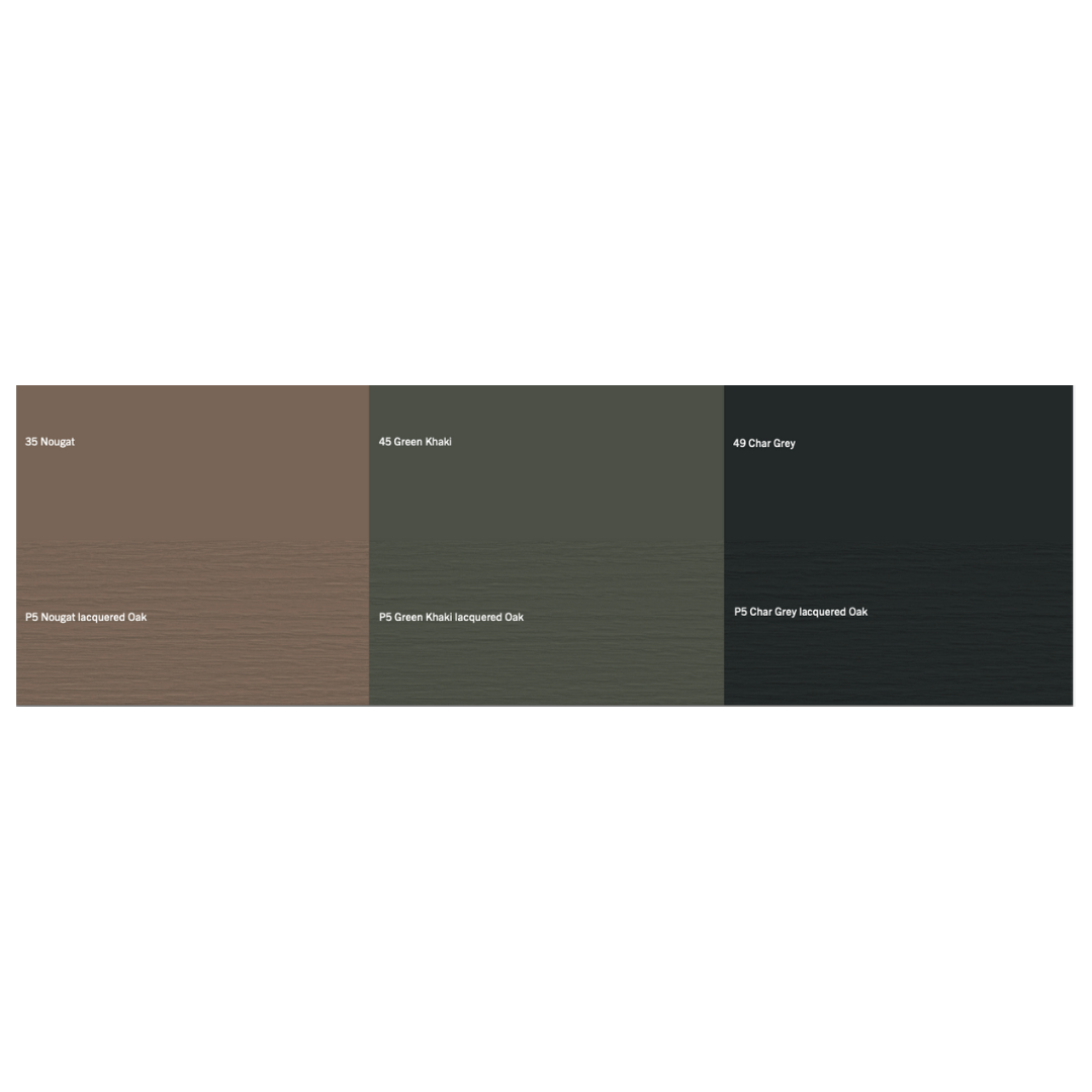 Option 1: Char Grey Lacquered Oak Veneered MDF Shelf, Char Grey Powder Coated Metal Frame.