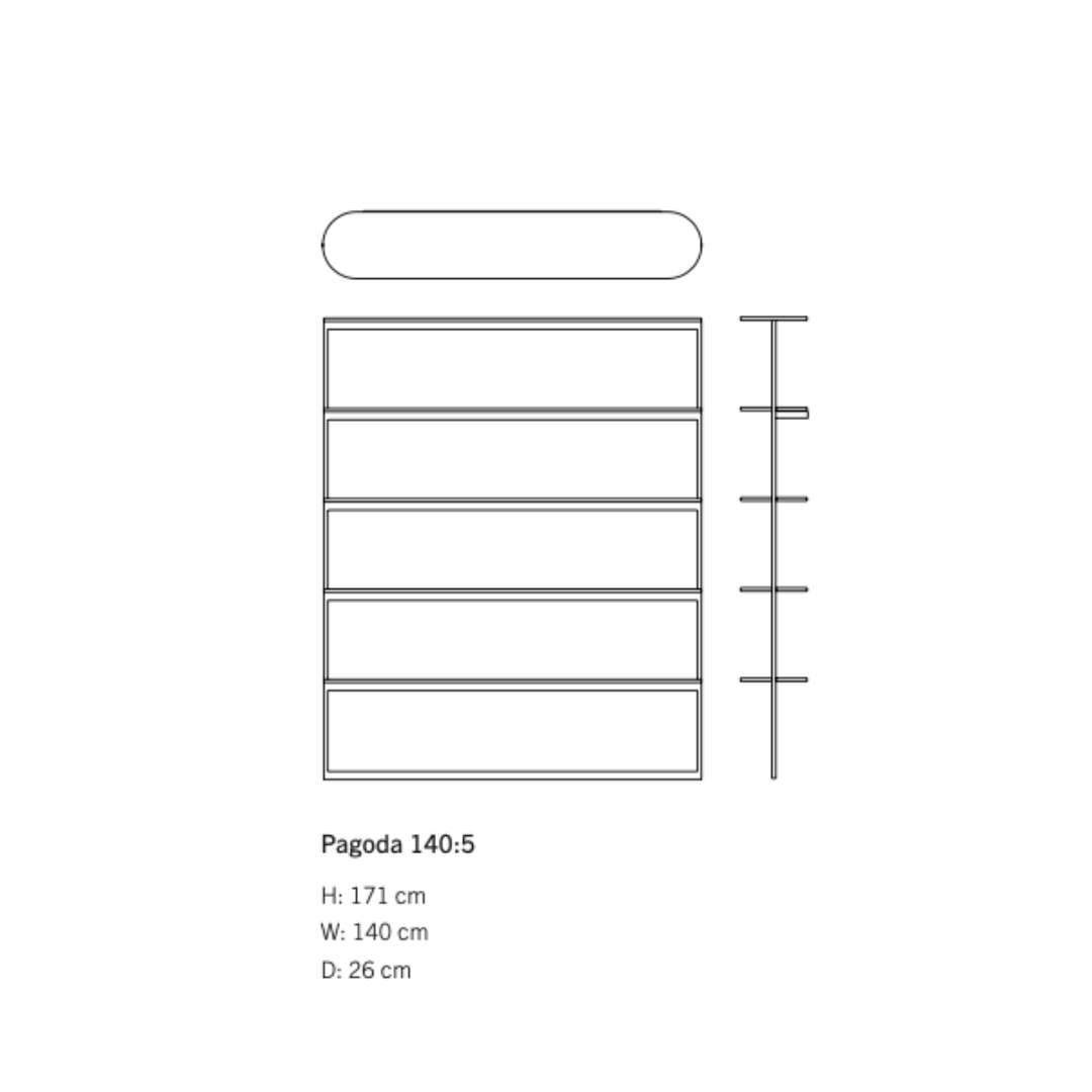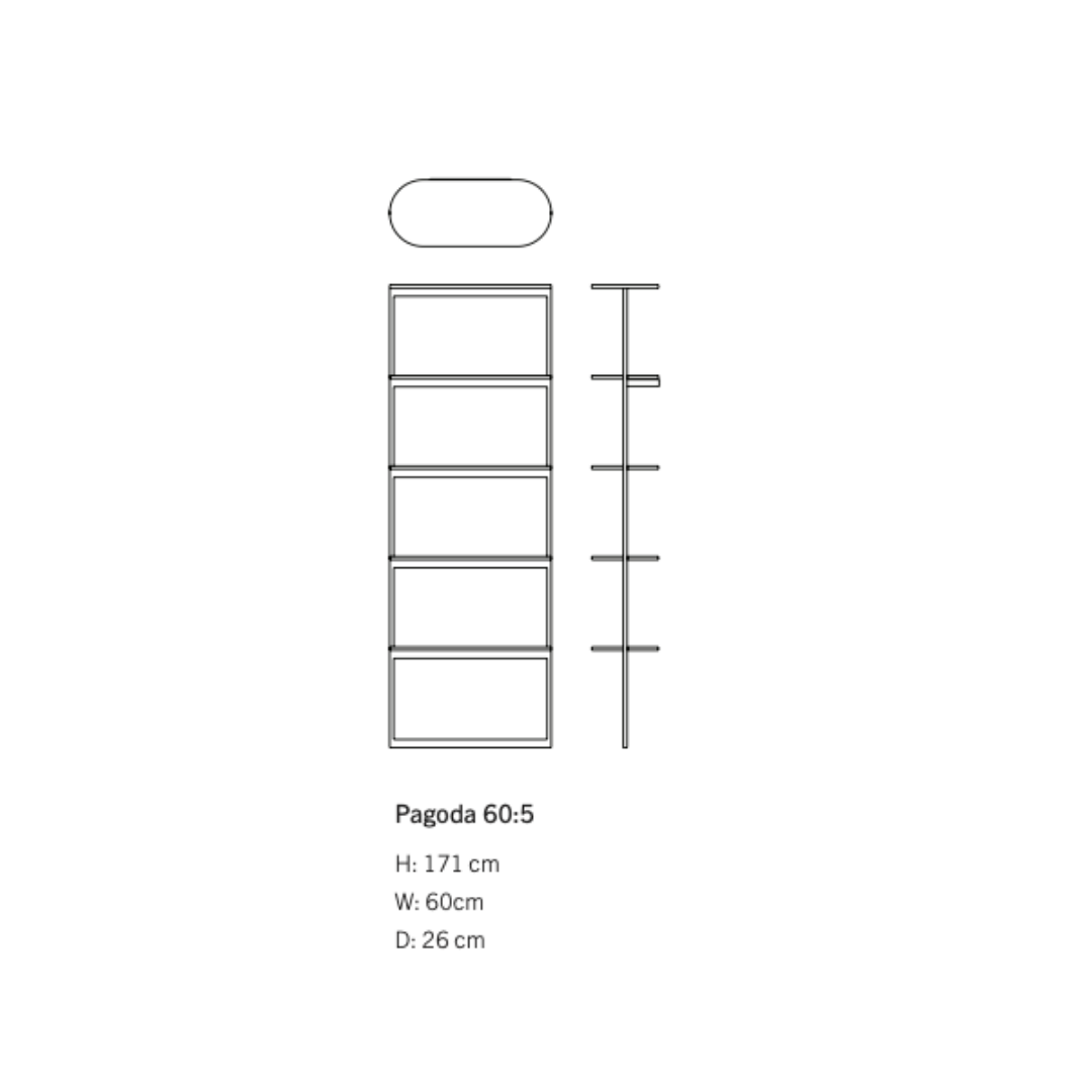 The pagoda storage cabinet by designers Broberg & Ridderstrale is airy and elegant with 5 spacious shelves and wall mounting.
