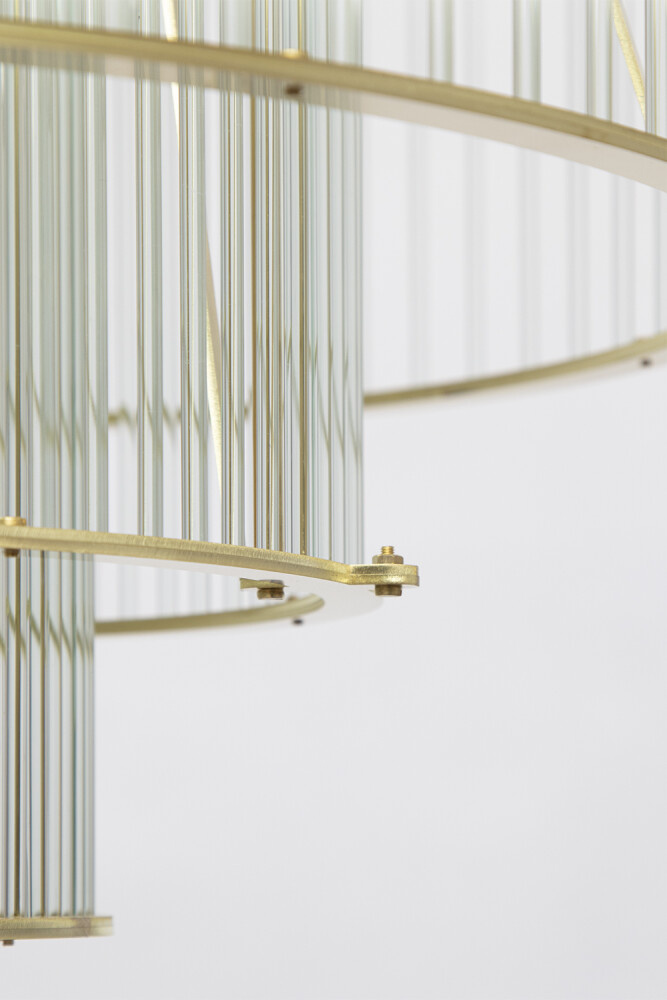 The design plays with contrasts. The robust, almost industrial design is softened by the transparency and refinement of the glass. The result is a chandelier that is simultaneously powerful and elegant – a sculptural focal point that effortlessly complements modern, contemporary, and architectural interiors.