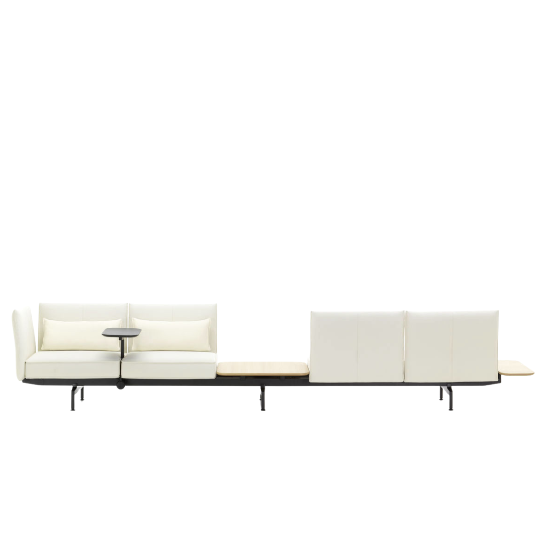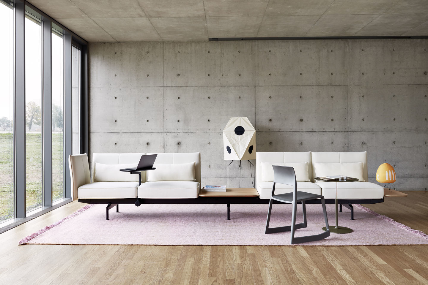 This new outlook led to the collaboration between designers Edward Barber and Jay Osgerby and Vitra, resulting in the new Soft Work seating system, which is suitable for both home and office.The classic table-workstation can be placed next to this sofa, at the same time this is also a sofa to relax and take a moment for yourself.