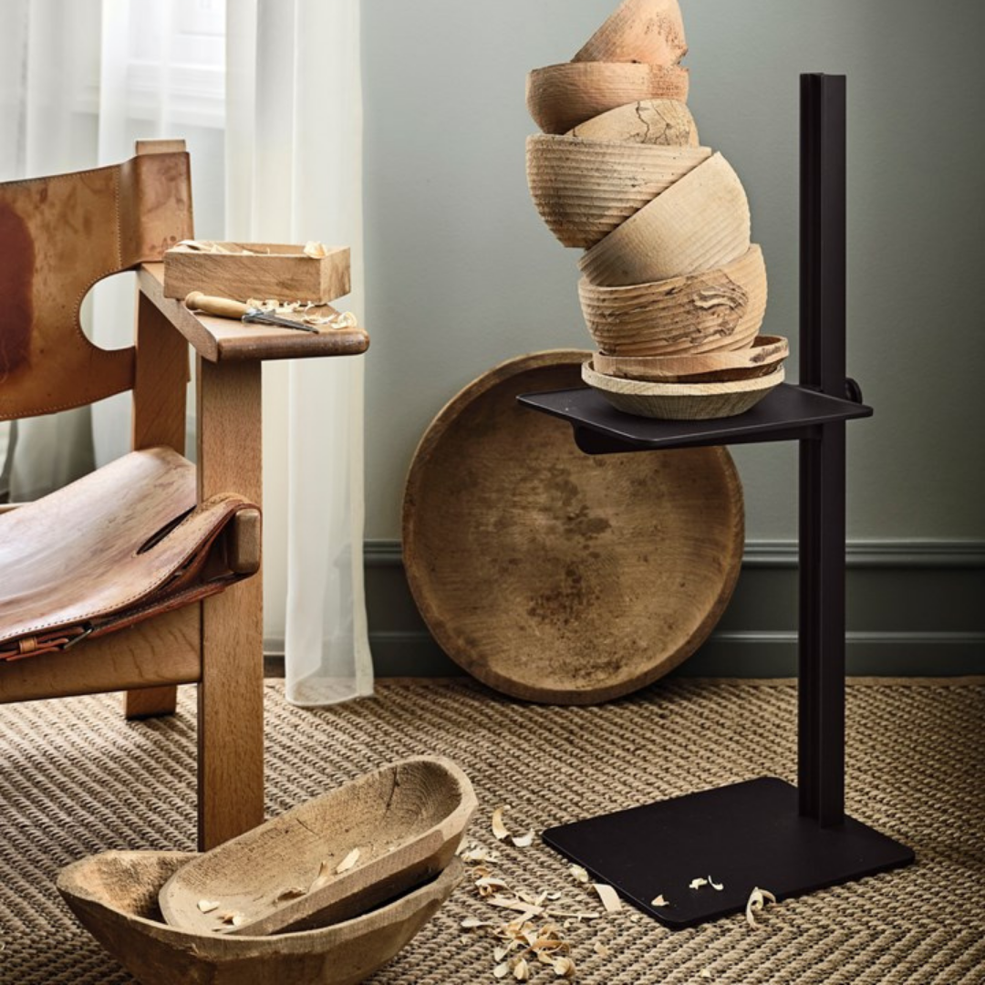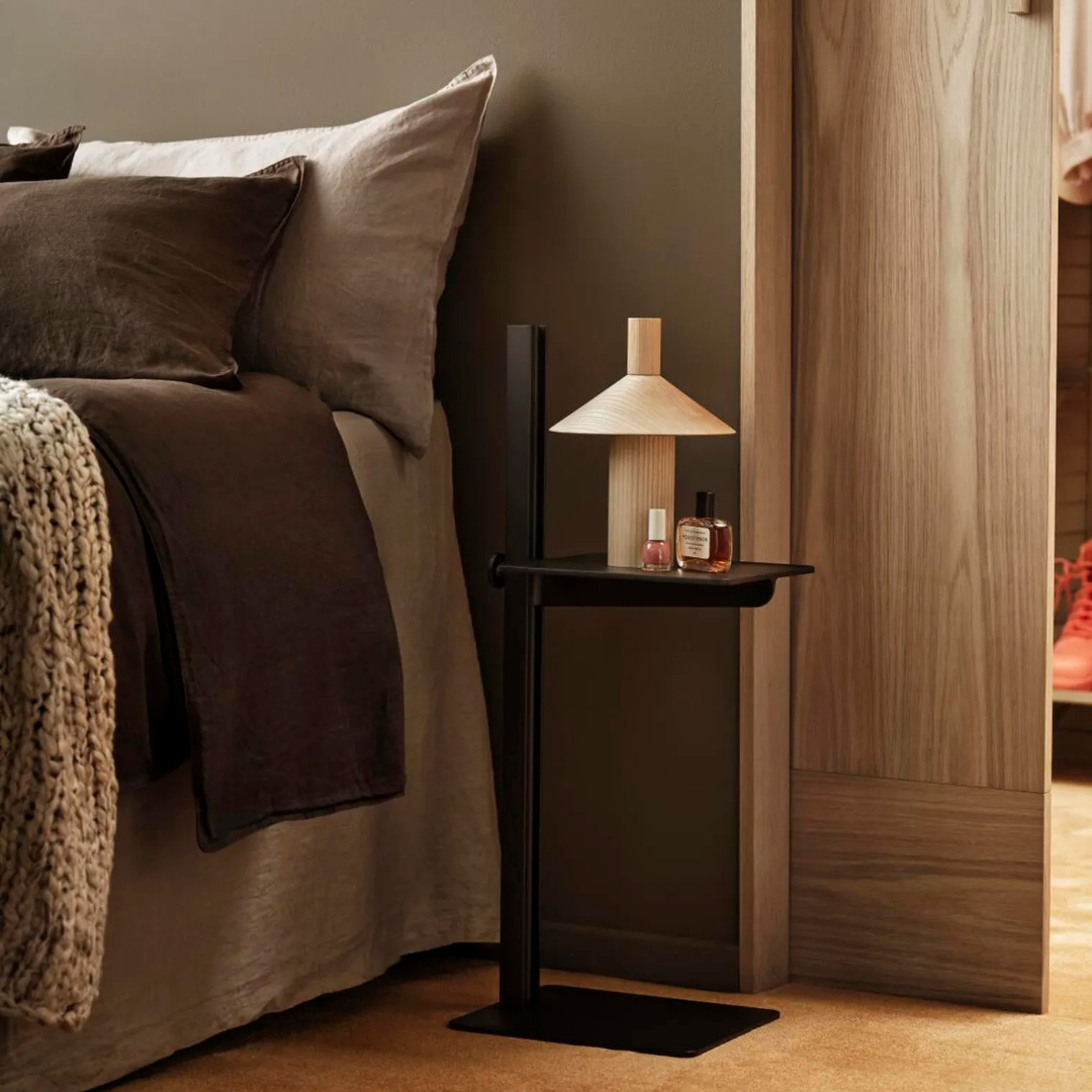 Het Museum side table from String Furniture offers a stylish and practical place to display flower vases, art or anything else you want to display. A design by TAF Studio, the table is adjustable in height, creating endless possibilities to use the table in your home: The Museum works perfectly as a bedside table, plant stand, temporary workplace or as a place to put your coffee cup or remote controls while lounging on the couch. The table leg, inspired by industrial steel beams, is placed on the side of the base so that the table top can easily be slid over the sofa or bed.
