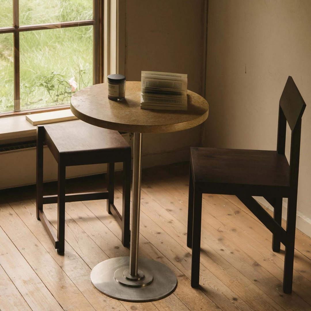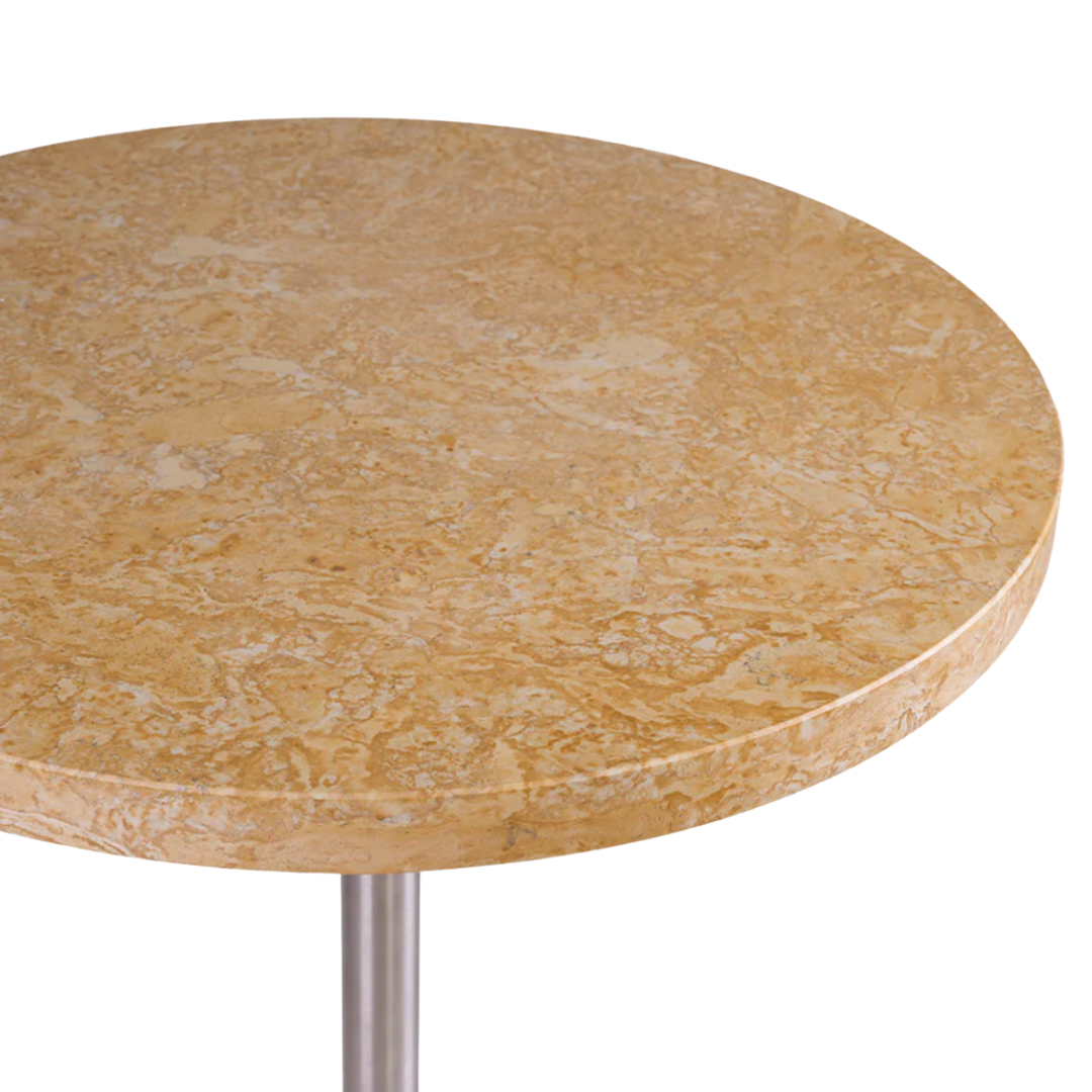 Table 57 in Yellow Limestone is an exceptional furniture piece designed by Per Holland Bastrup, featuring a stainless steel base and a distinctive Yellow Limestone top that seamlessly blends into various indoor and outdoor settings. This sleek and minimal table is crafted to cater to a wide range of environments including terraces and outdoor patios