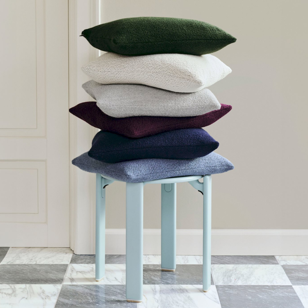 The simple square design is made of a thick boucle upholstery fabric with a nice-feeling structured texture. Available in a range of beautiful colors and can easily be used in combination with other cushions.