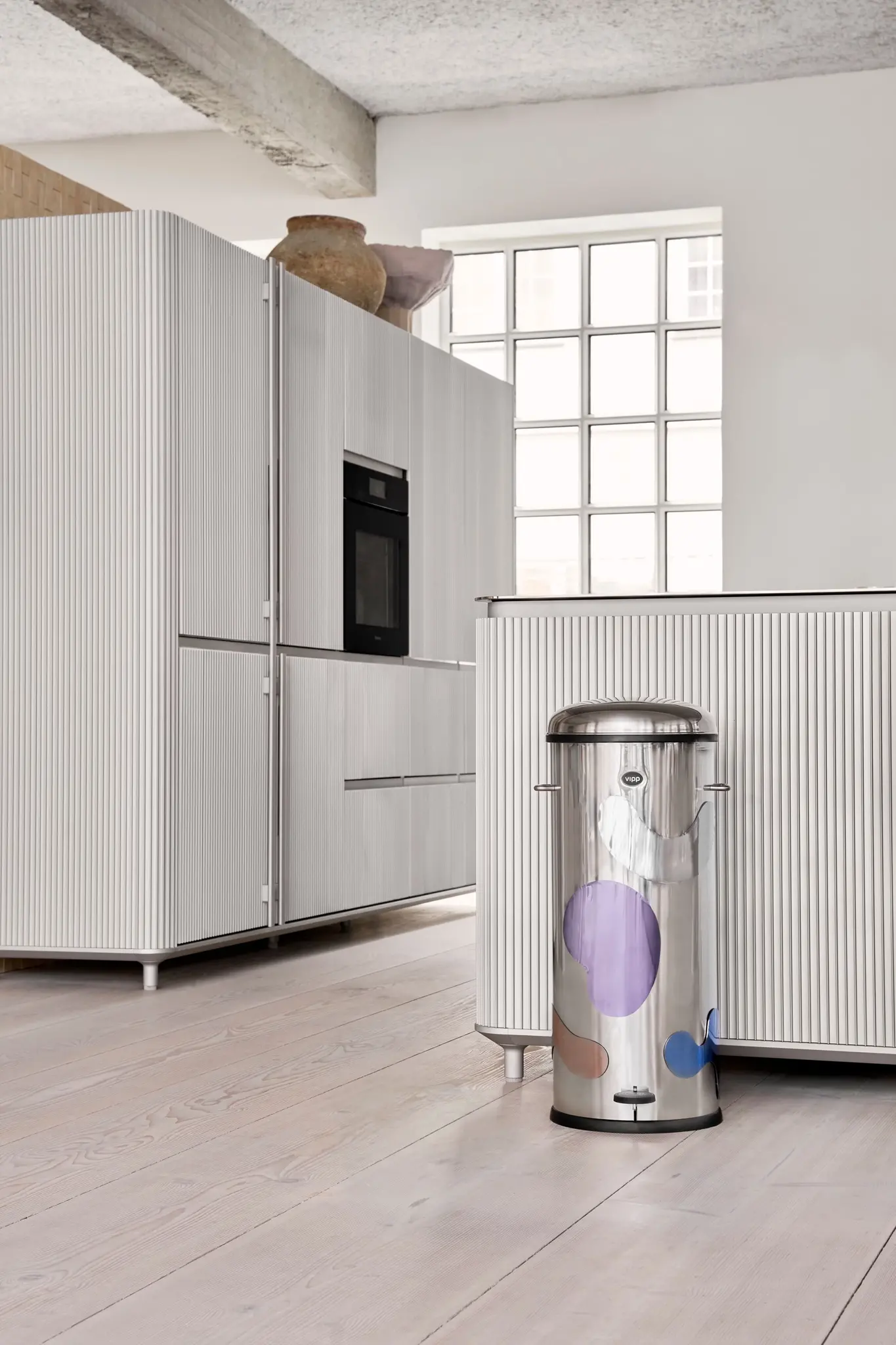 The original pedal bin (1939) by Holger Nielsen was not designed in the strict traditional sense, but took its shape during the design process: a large base for stability, a domed steel lid at the top that is easy to clean, handles on the side so it is easy to move, and a rubber ring at the base for floor protection.