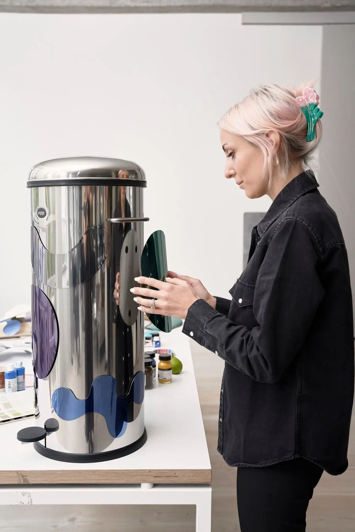The iconic waste bin is now available with organic shapes that mimic the fluidity of seaweed through six unique magnetic shapes. They cover a large part of the Vipp box, which is made of polished steel.