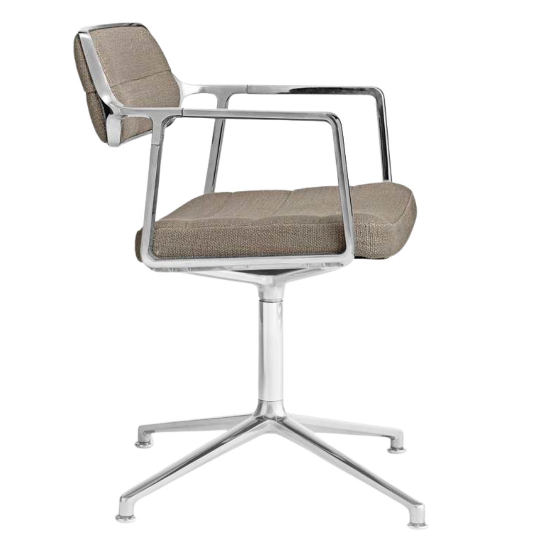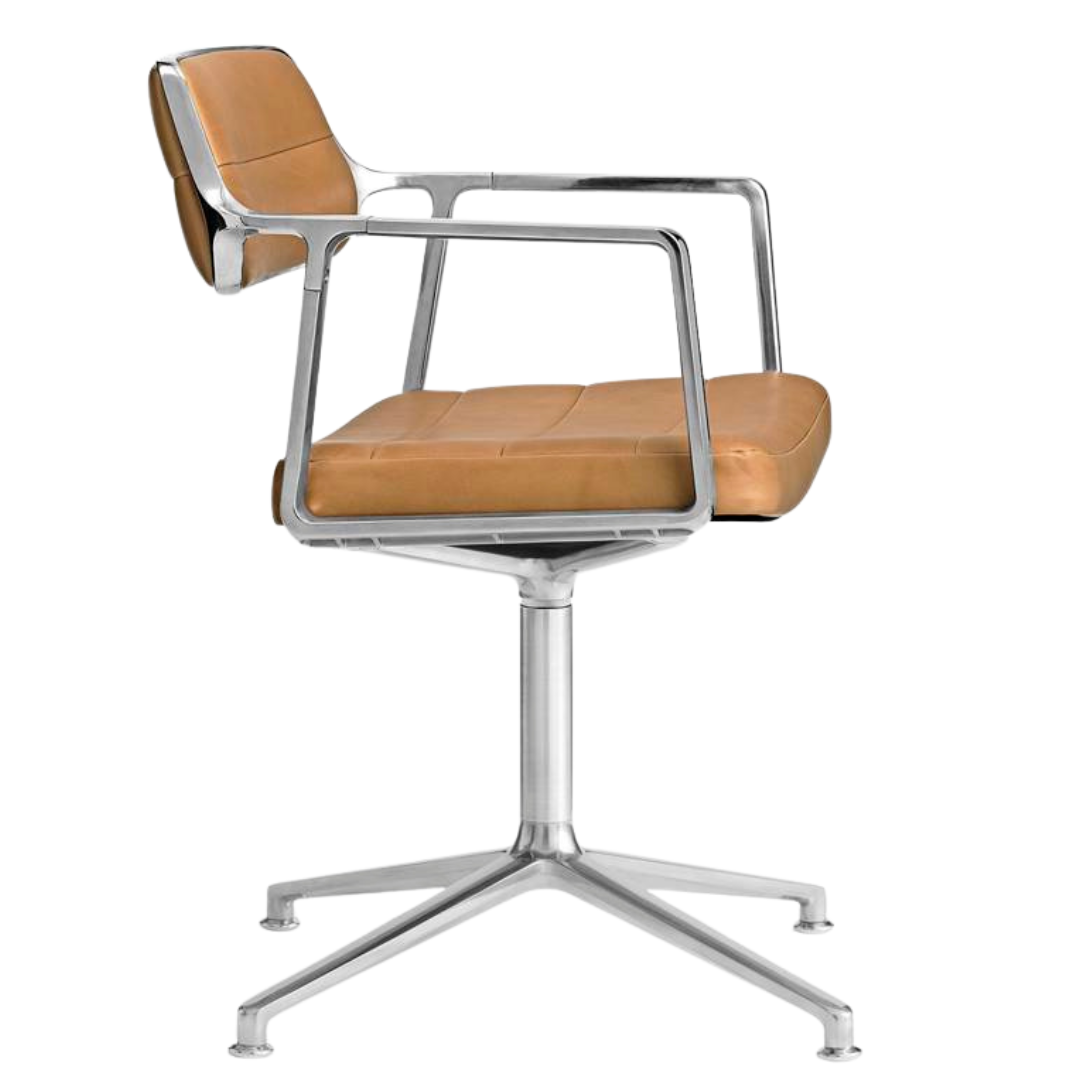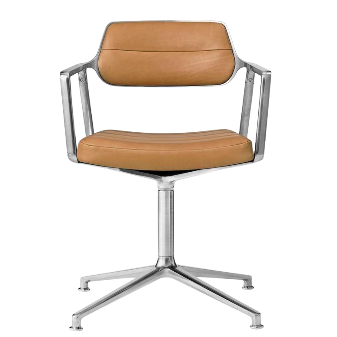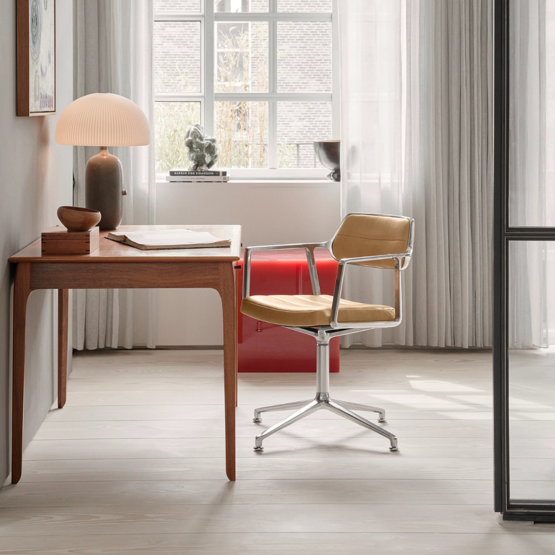 The beautiful Vipp chair is suitable for at your desk or at the dining table for the home worker. The chair has a polished aluminium frame. The frame of the chair has beautiful rounded armrests and a compact backrest, which gives this chair a modern and industrial look.