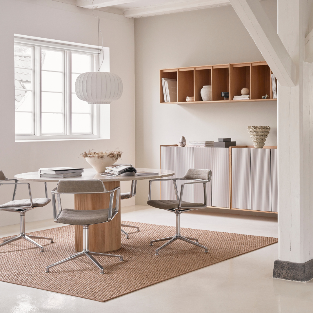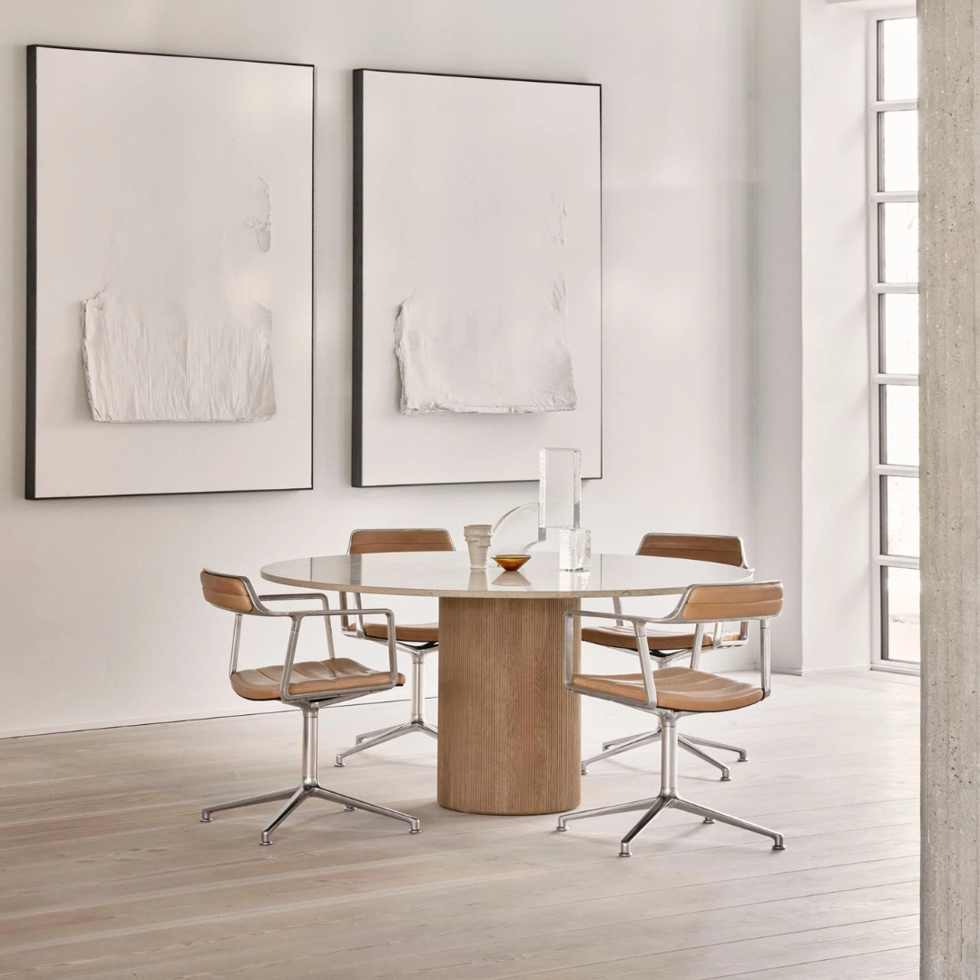 The Vipp 495 Cabin is one of the first dining tables from Vipp, which is made of solid wood. The table, like the other furniture in the collection, is available in light oak or dark oak. The round table top is available in different variants - choose between light oak, dark oak, black marble, light gray marble or light beige marble (Jura). The beautiful details include the beautiful pattern in the marble table top, as well as the base, which has grooved details.