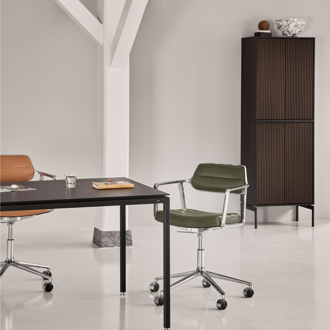 This Vipp675 H4 cabinet fits both in the home and in your workplace. Hide items behind aluminum doors with an integrated push-click mechanism. The four adjustable shelves create spacious storage compartments. The cabinet stands on aluminum legs.