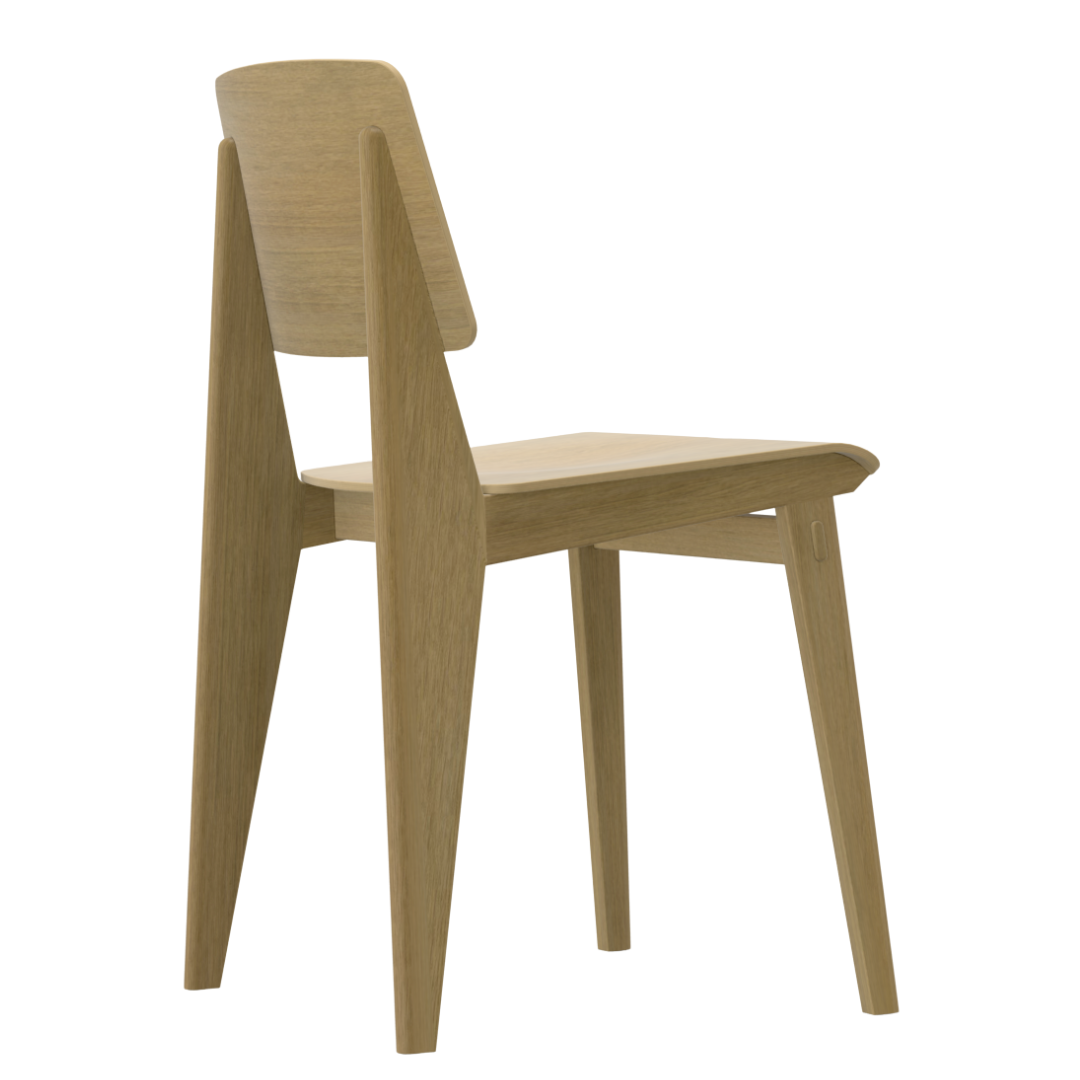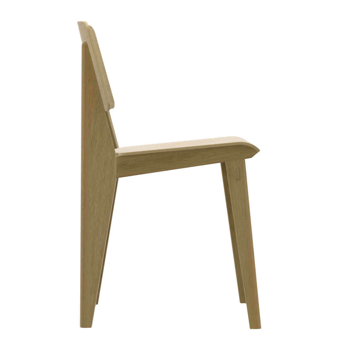 After the war, there was again a sufficient supply of oak wood, which was widely used in France to build ships and cathedral roofs because of its hardness and strength. Because these properties are also ideal for an all-wood chair, the Chaise Tout Bois was eventually made of oak and plywood