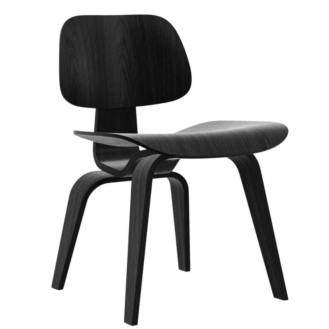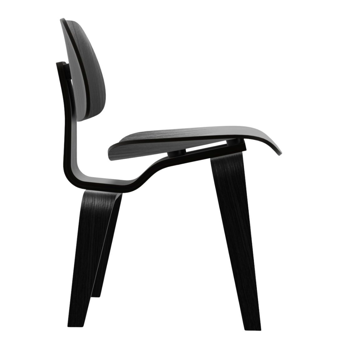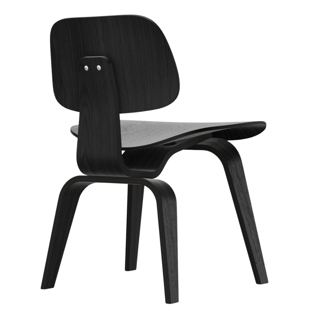 The Plywood Group consists of a series of 6 different models that are distinguished by materials and upholstery. The DCW, which stands for Dining Chair Wood, is made entirely of molded plywood (ash wood) and is available in natural or black stained. The individual elements of the DCW are attached to the frame with elastic rubber discs, which further increases the seating comfort.