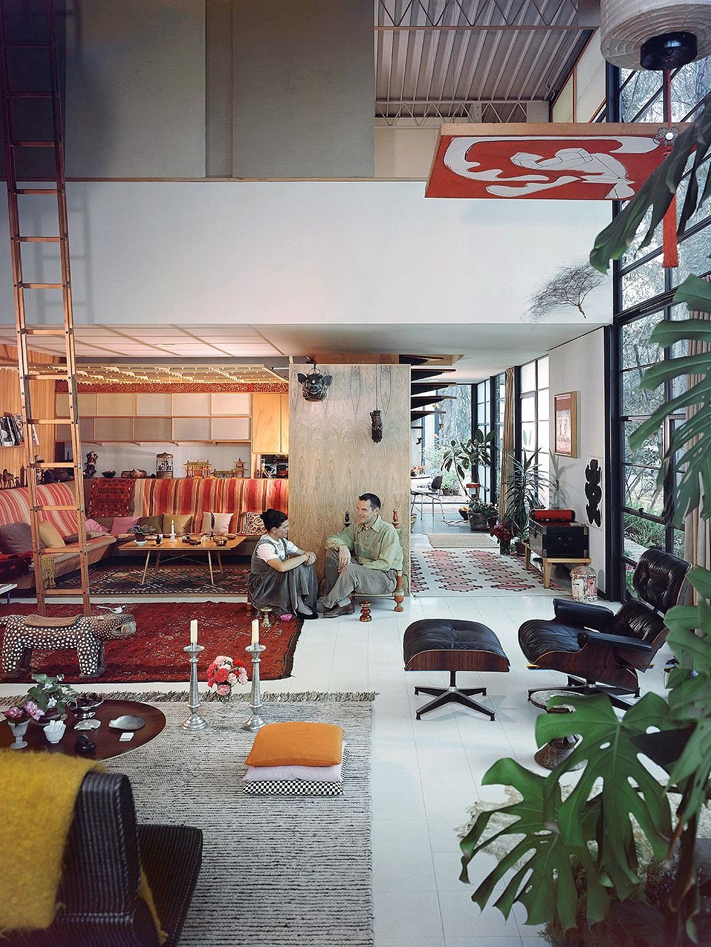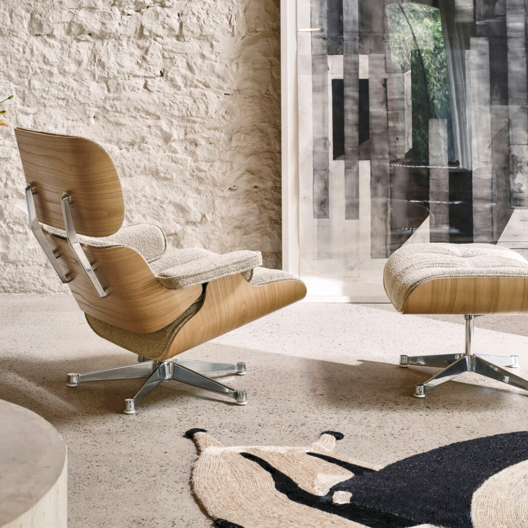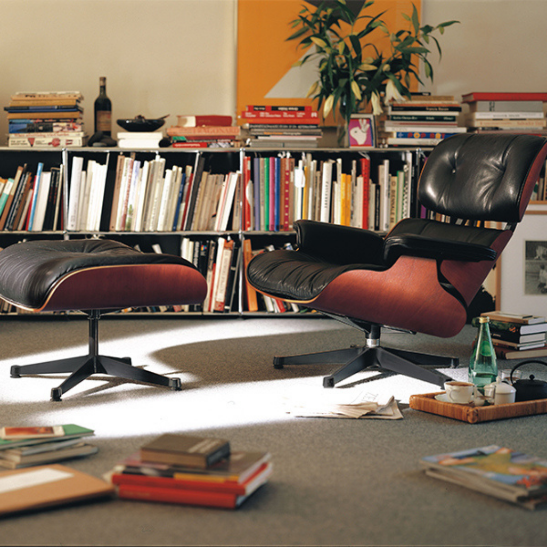 The iconic Eames Lounge Chair, designed by Charles and Ray Eames, is a modern version of the more traditional English club chair.