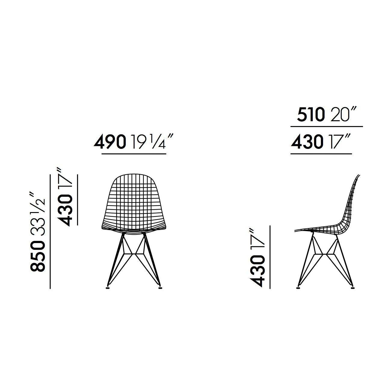 The most functional solution turned out to be a square cross structure in steel wire. Thanks to its airy and ergonomic shape and the classic Eiffel base, Wire Chair DKR will bring a fresh, graphic touch to all types of interiors year after year.