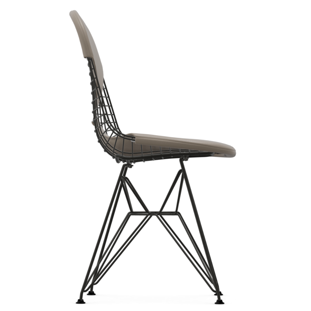 Vitra Eames Wire DKR-2 Chair black, seat cushion sand leather