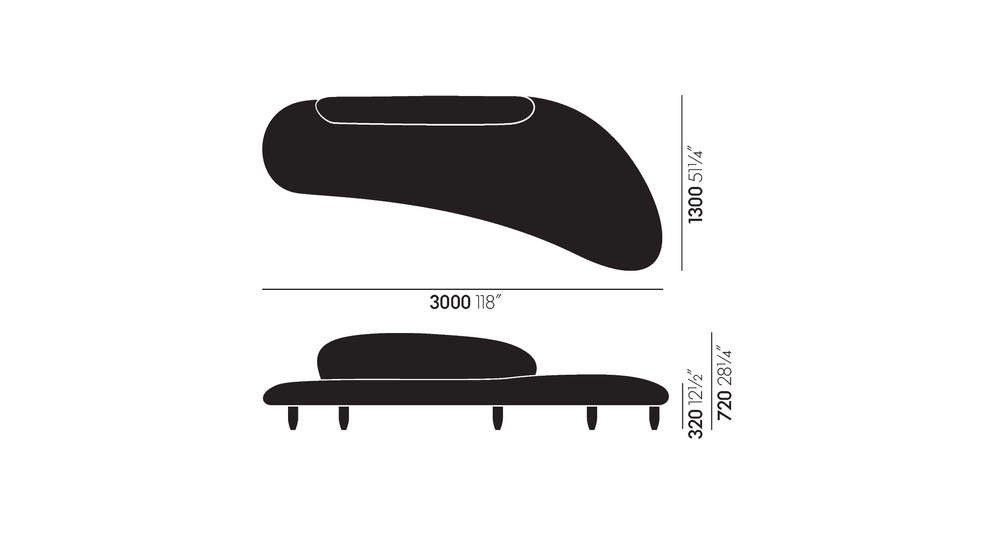 The Freeform is a collection designed by Isamu Noguchi for Vitra. The quality of Noguchi's design talent is certainly reflected in the Freeform Sofa: it is completely different from other designs from the same period and, in combination with the Ottoman, is an enlarged sculpture of flat, round river stones. The sleek organic shapes are both fluid and graceful.