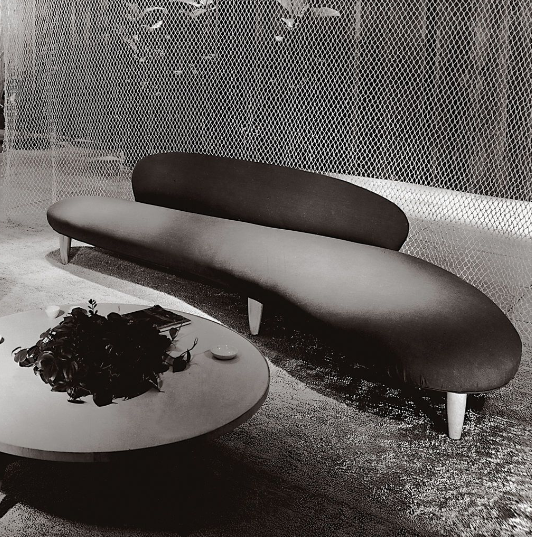 Noguchi emphasizes the lightness of the elements with a thin but comfortable upholstery and a choice of upholstery fabrics in natural colors. The Freeform Sofa and accompanying Ottoman were produced in limited numbers around 1950.