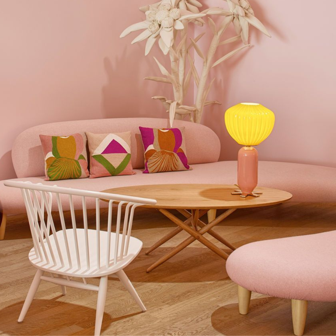 Base: natural maple. Fabric: Credo Upholstery color: pale rose/cognac