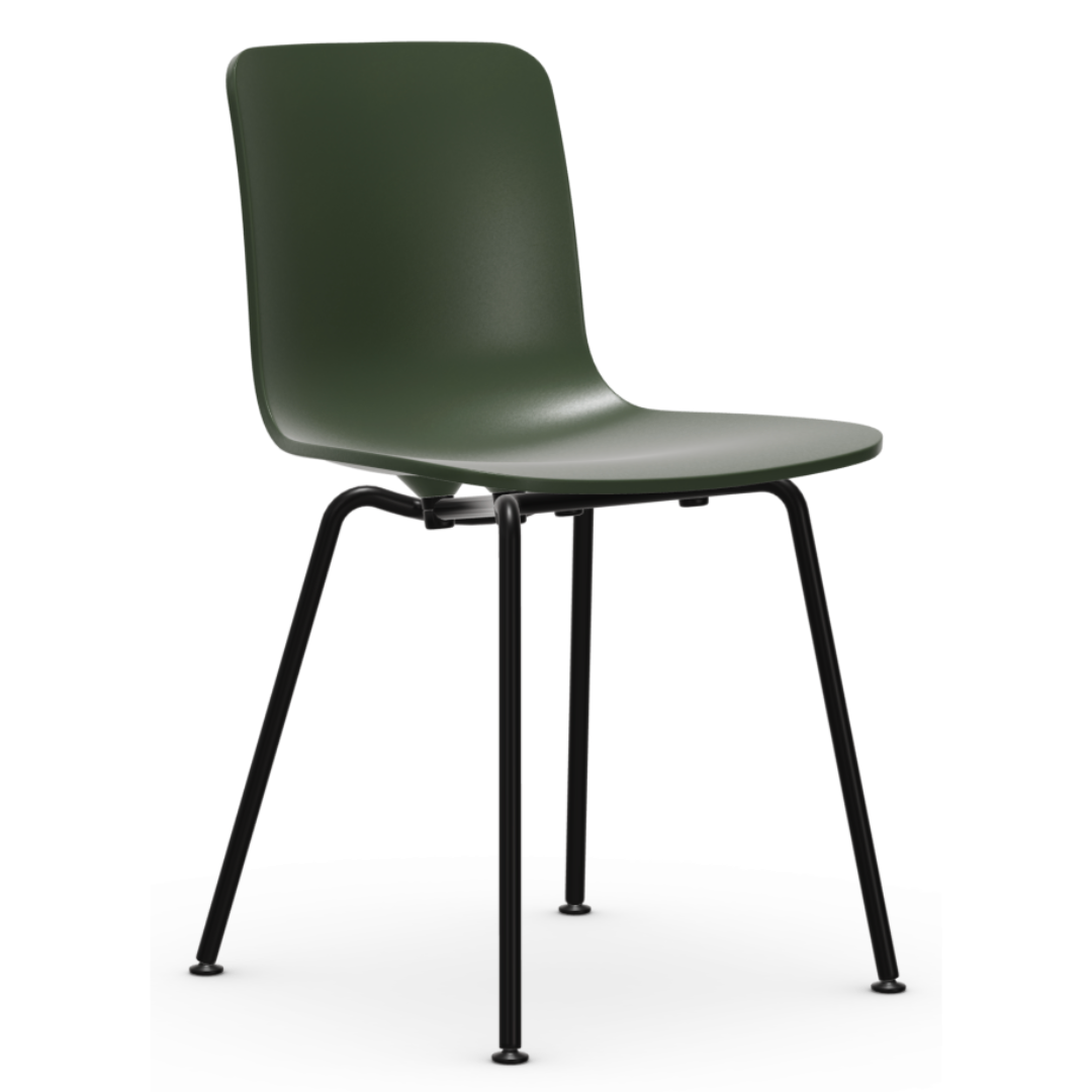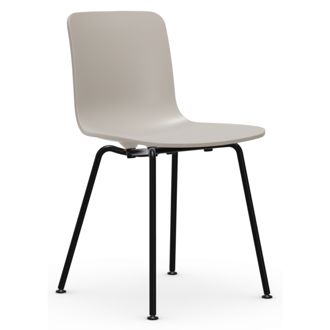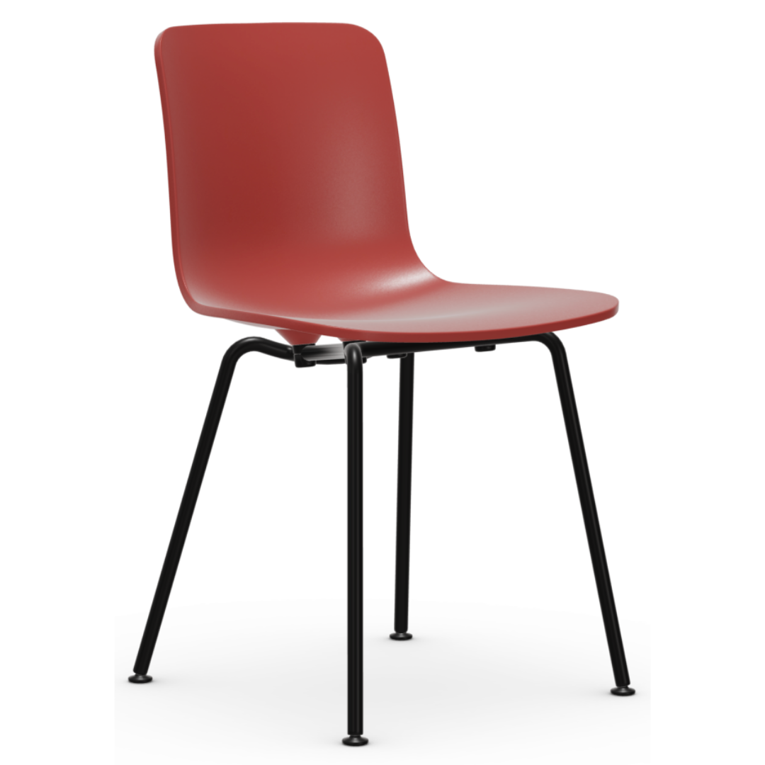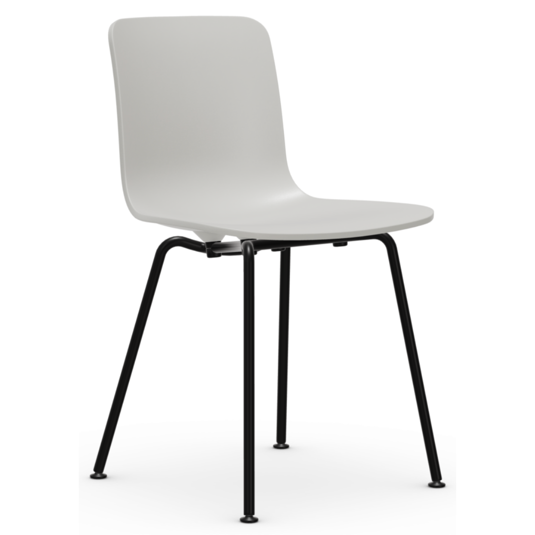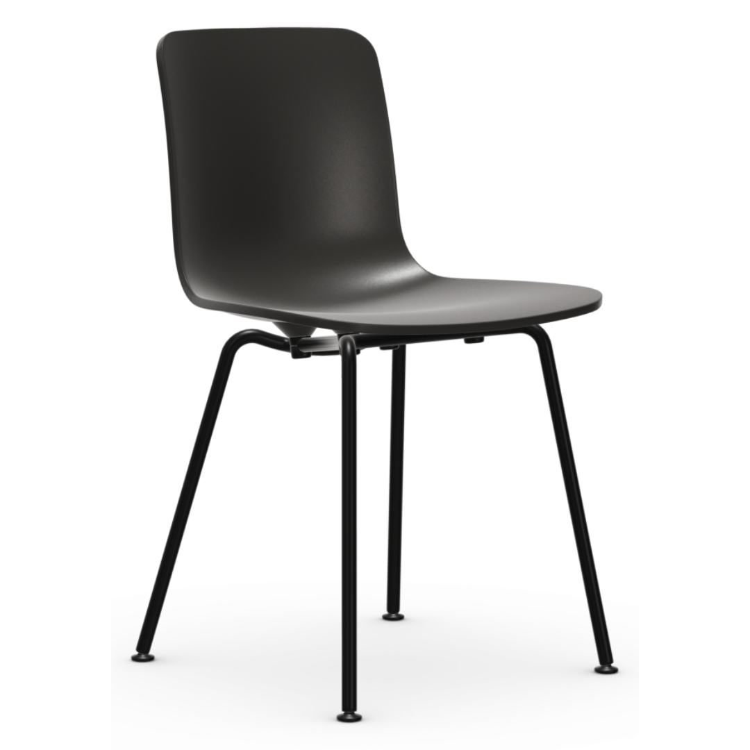 The minimalistic Vitra Hal RE chair by Jasper Morrison combines a slim tube base with a smoothly shaped polypropylene seat shell.