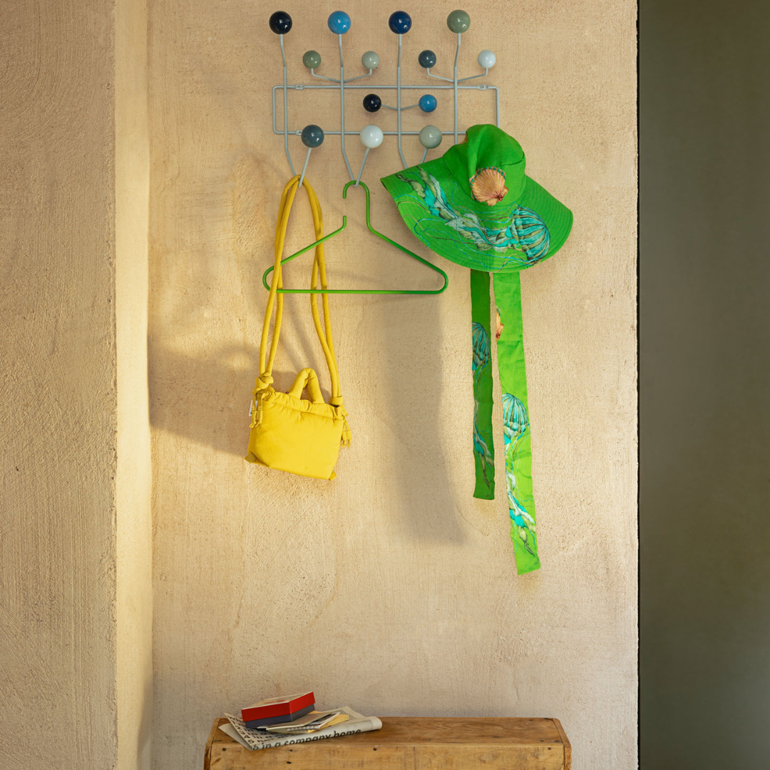 Charles and Ray Eames designed the ’Hang it all’ coat rack for children, but its colorful palette and distinctive shapes quickly attracted also adults. The 14 wooden balls of ’Hang it all’ can fit a great amount of clothes and accessories, and several coat racks can be combined together to form a larger rack. Released in 1953 and currently produced by Vitra, ’Hang it all’ is a perfect addition to the hall or dressing room.