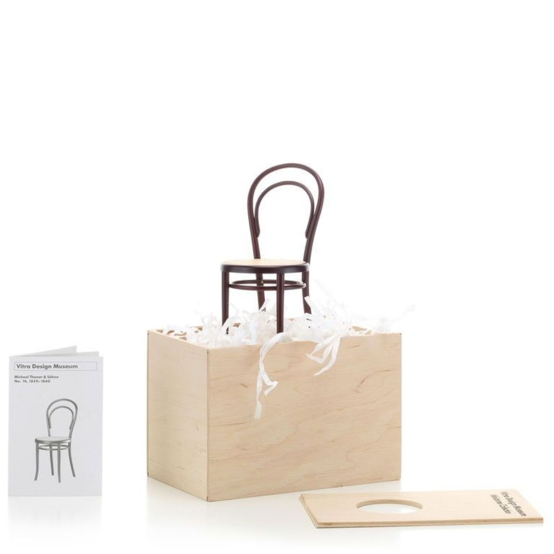 Material: Miniature chair made of laminate. Comes in a beautiful gift box from the Vitra Design Museum.
