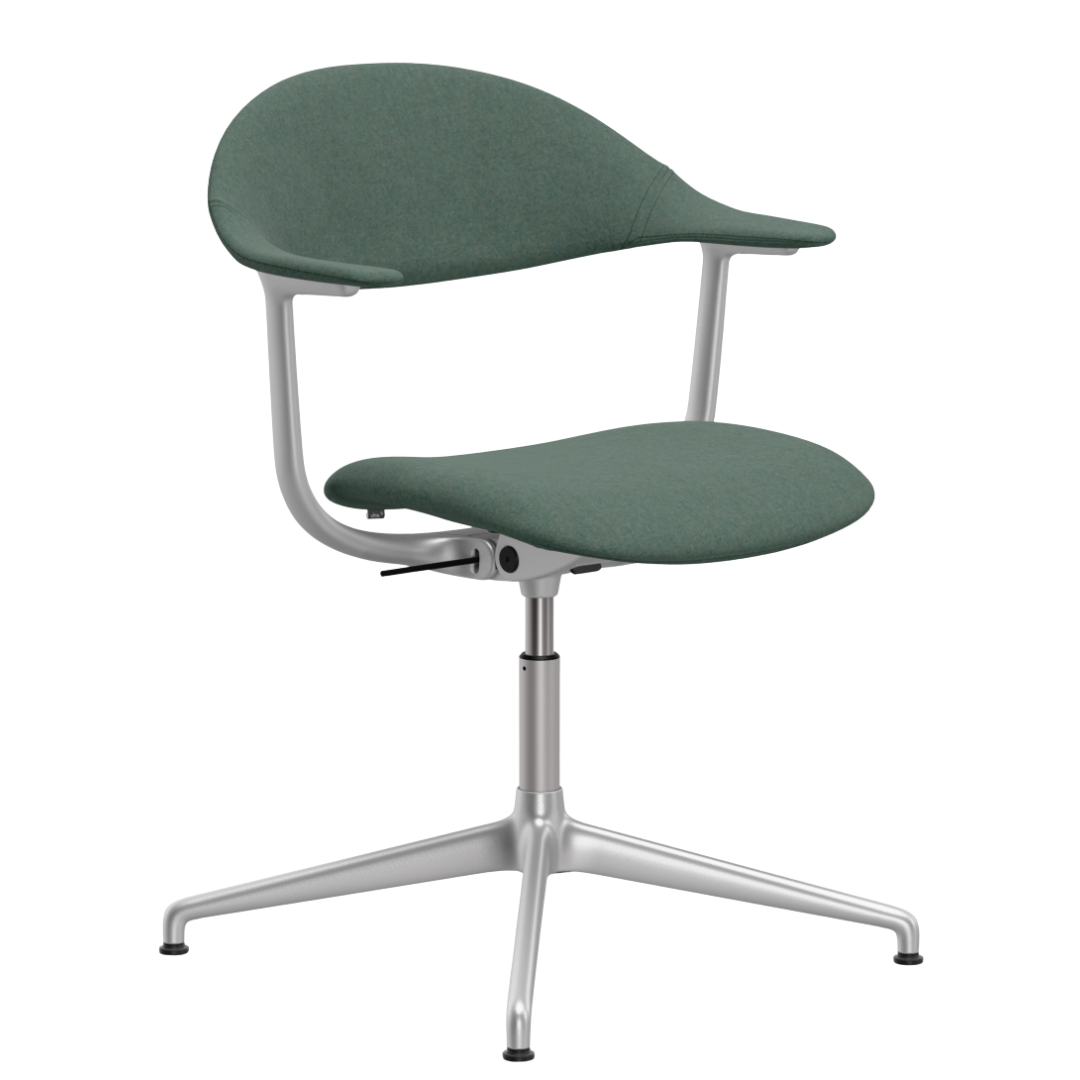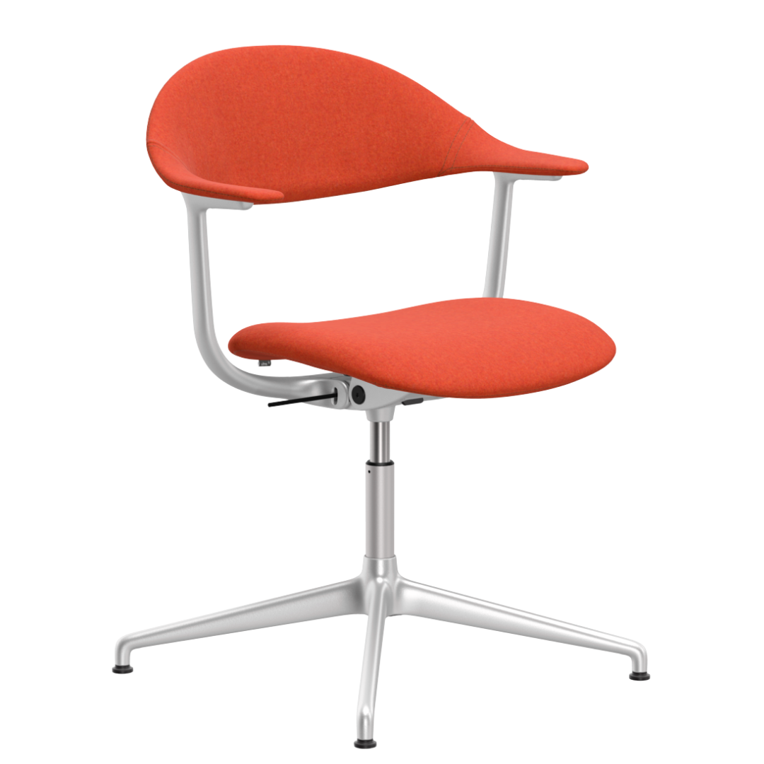 The four-legged base and mechanism are made of aluminium, 95% of which comes from recycled material. Available in various colours with a fine-textured powder coating for long-lasting colour and surface protection.