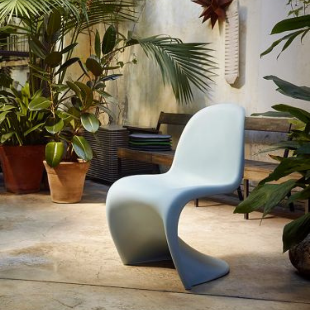 Made of durable, colored polypropylene with a matte finish, the ergonomically shaped seat and the slightly flexible material make the Panton chair pleasant to sit on. The material also makes it possible to use the striking Panton chair outside on the balcony, terrace or in the garden.