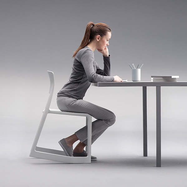 The Tip Ton chair by Vitra catches the eye with its special basic structure that allows the chair to be tilted forward a few degrees. According to research at the ETH Zurich University in Switzerland, a slightly forward-looking sitting position activates the back and abdominal muscles and thus helps the body to get more oxygen.