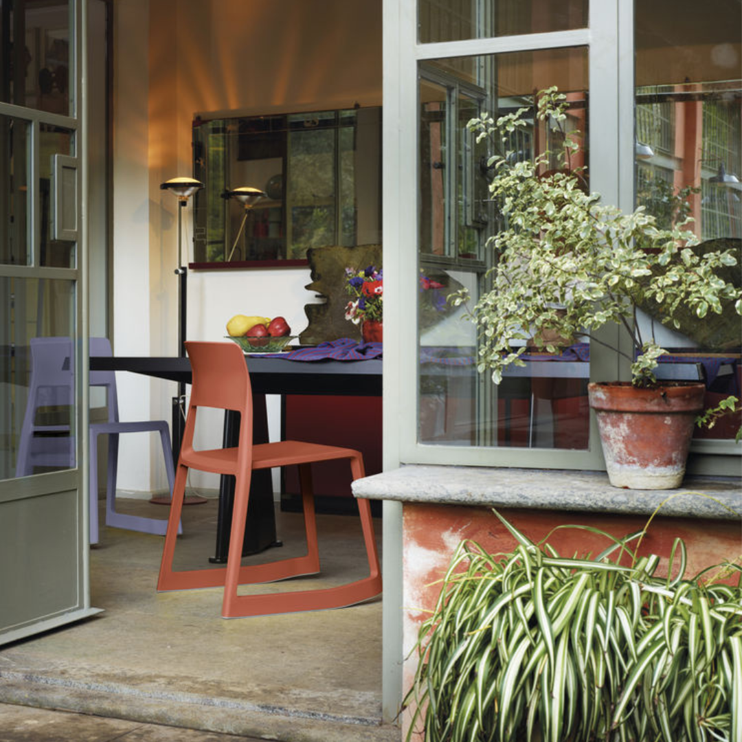 In short, the Vitra Tip Ton chair brings an interesting combination of function and form to your office, kitchen or elsewhere in the house or outdoors. The chair moves easily when you write or eat something, or when you leave the table.