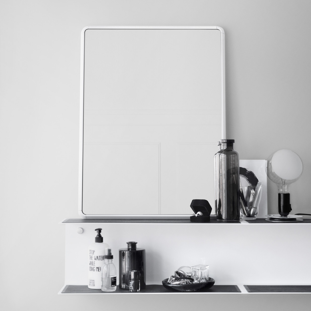 De functionele spiegel uit de moderne Vipp collectie, is ideaal voor in uw badkamer, slaapkamer of uw gang/hal. De Vipp spiegel is een krachtig statement in zijn eenvoud en heeft een mooi afgerond frame met daarin 8 millimeter dik spiegelglas dat bestand is tegen vochtige ruimtes.