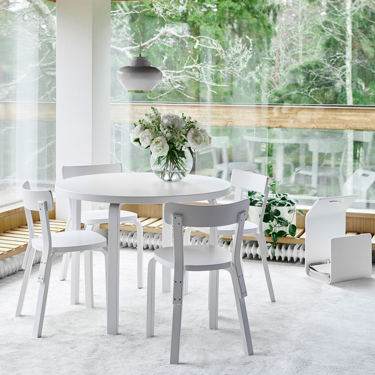 De bredere basis en rugleuning van stoel 69, , geeft meer stabiliteit voor het dagelijkse gebruiks gemak. Gemaakt van Fins berken van hoge kwaliteit, de natuurlijke schoonheid van het hout schijnt door de blanke lakafwerking de zitting kan eventueel in een wit laminaat.