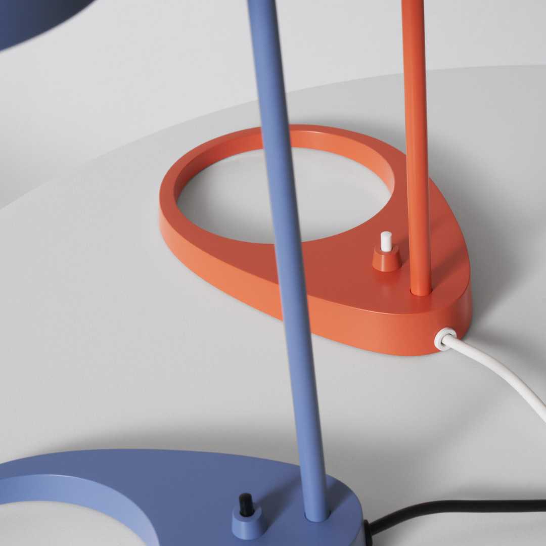 De tafellamp is verkrijgbaar in 9 kleuren: Zwart, Wit, RVS, Warmgrijs, Dusty Blauw, Electric Orange, Soft Lemon, Pale Petroleum, Warm Sand.