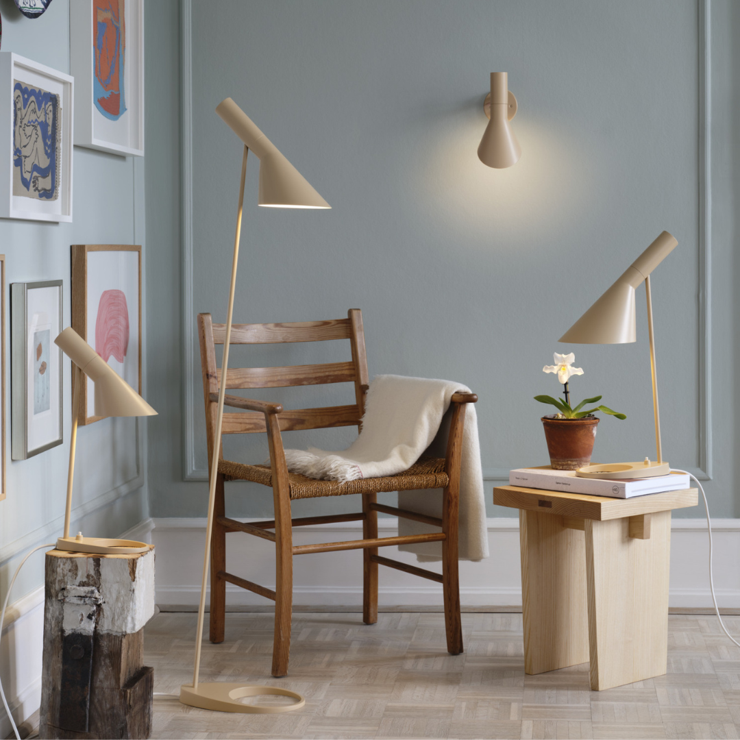 De witte AJ vloerlamp wordt geleverd met een witte kabel. De andere kleuren worden geleverd met een zwarte kabel.