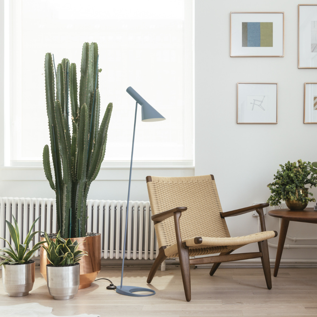 De witte AJ vloerlamp wordt geleverd met een witte kabel. De andere kleuren worden geleverd met een zwarte kabel.