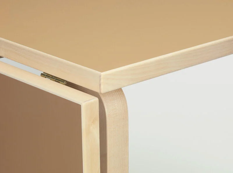 Daarom is deze klaptafel een uitstekende keuze voor kleine eet- of werkruimtes. De Aalto opvouwbare tafel heeft poten en randen van massief berkenhout en het opvouwbare tafelblad is afgewerkt met zacht, mat linoleum, een ideaal materiaal voor schrijftafels.