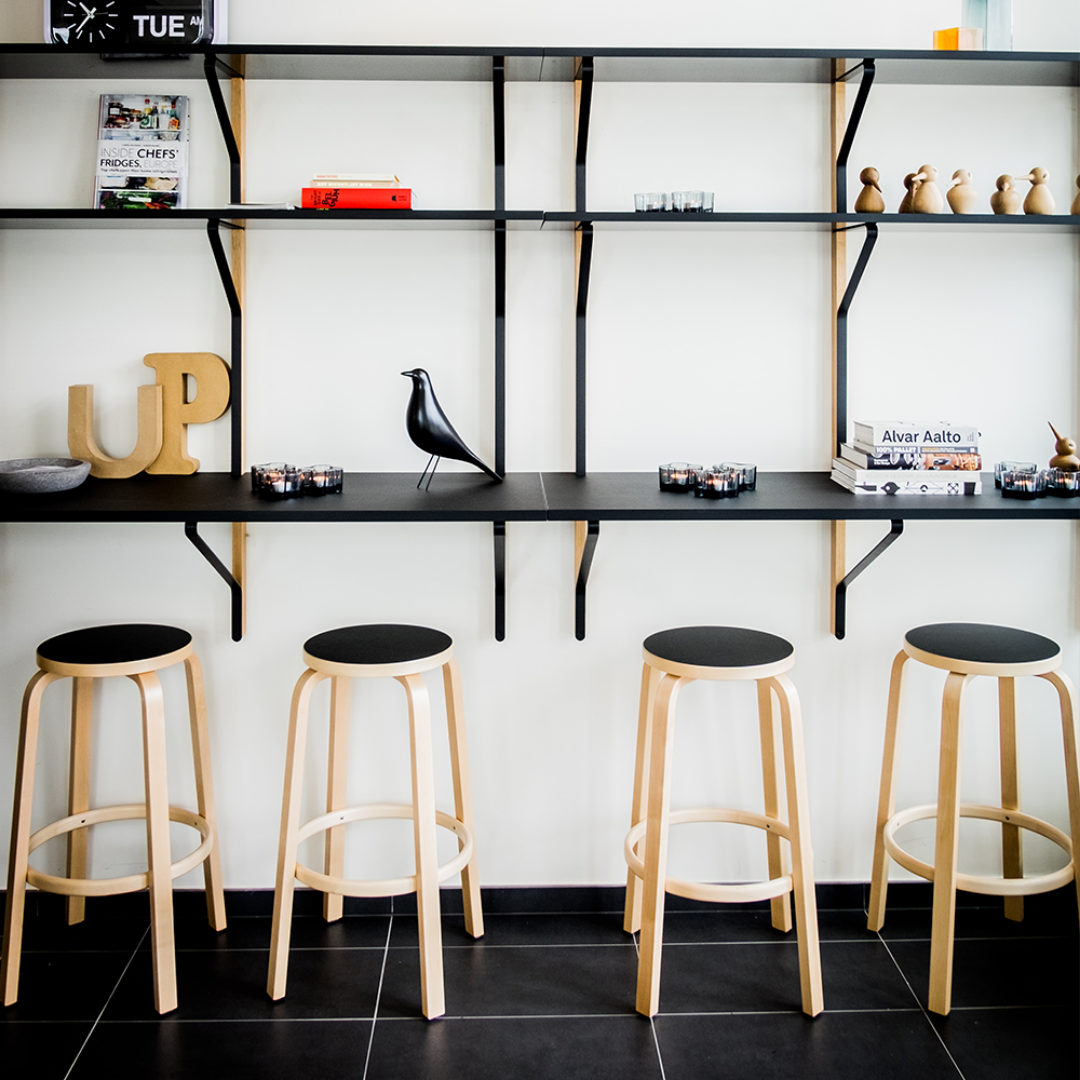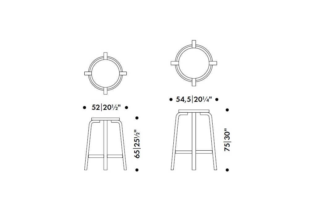 De Bar Stool 64 is een tijdloze design klassieker van Alvar Aalto, perfect voor keukens, cafés, bars en aanrechtbladen. Bewonderd door Steve Jobs, is het in verschillende Apple Stores gebruikt. Symmetrisch en niet-directioneel, de Bar Stool 64 staat altijd in de juiste richting.