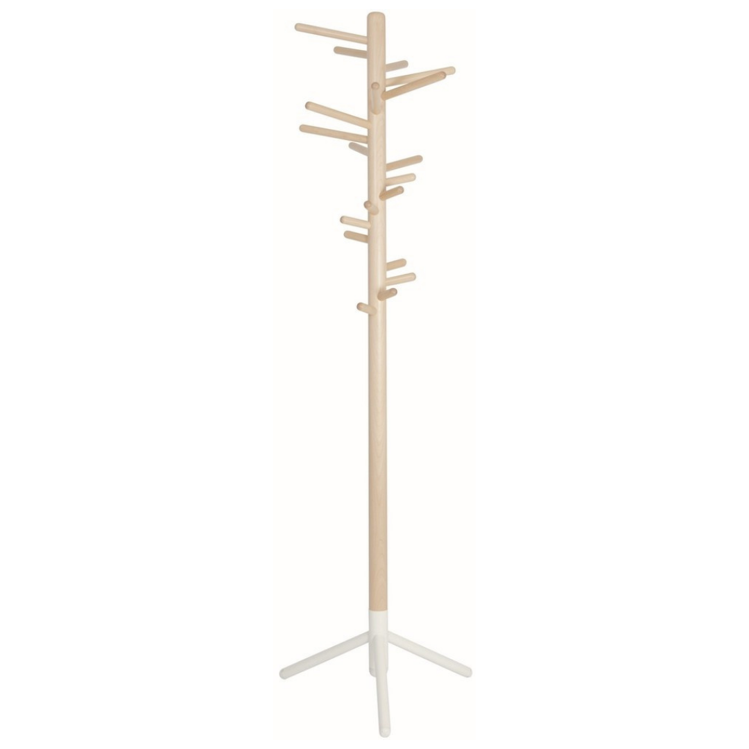 Deze kapstop van het Finse Artek is een moderne staande kapstok, en is gemaakt van massief berken met metalen poten.