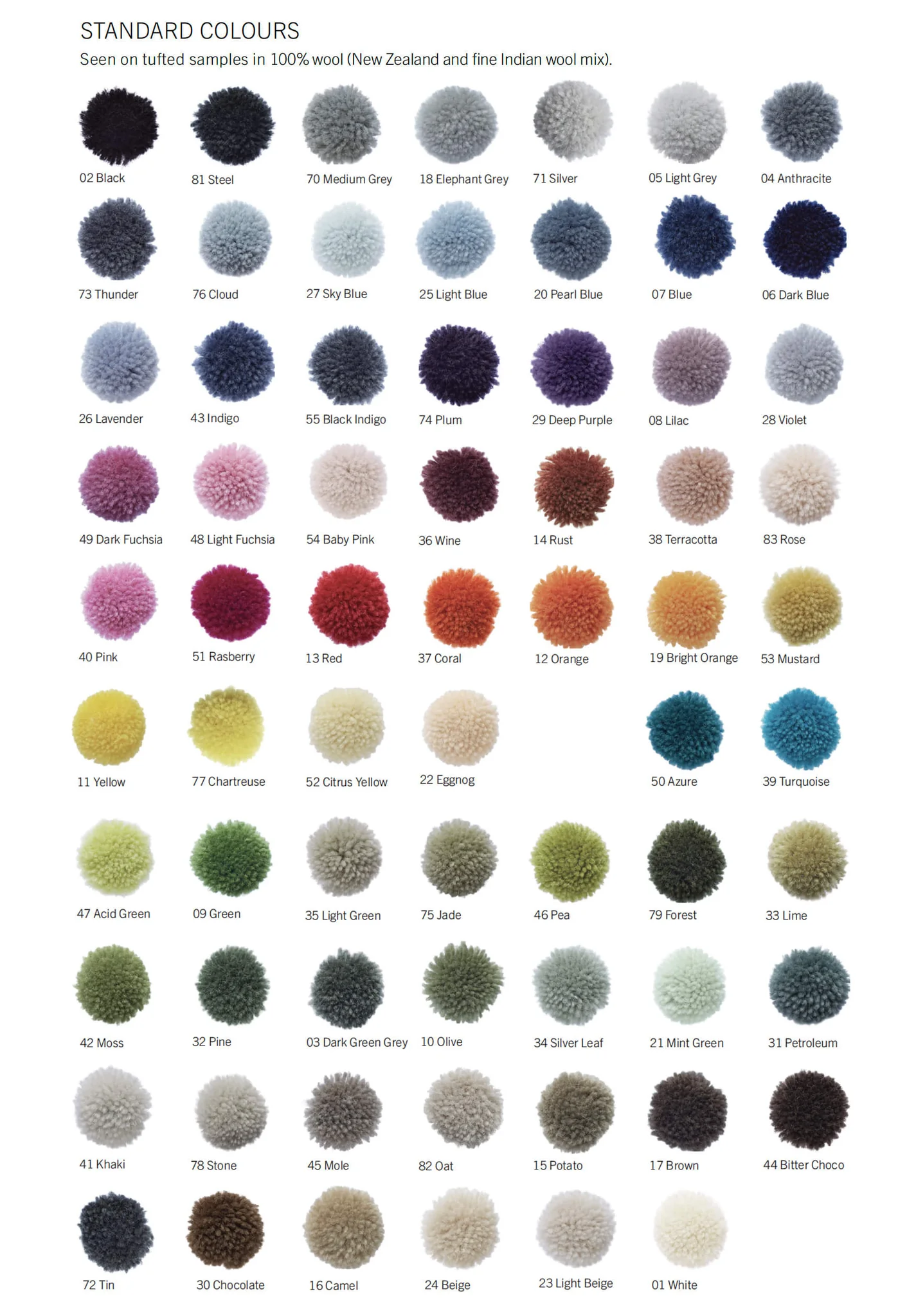 De met de hand getufte tapijten van het Zweedse Aspund zijn gemaakt van hoogwaardige Nieuw-Zeelandse wol die rijk is aan natuurlijke vetten die het tapijt een natuurlijke glans geven en tegelijkertijd een zeer goede bescherming biedt tegen vlekken.