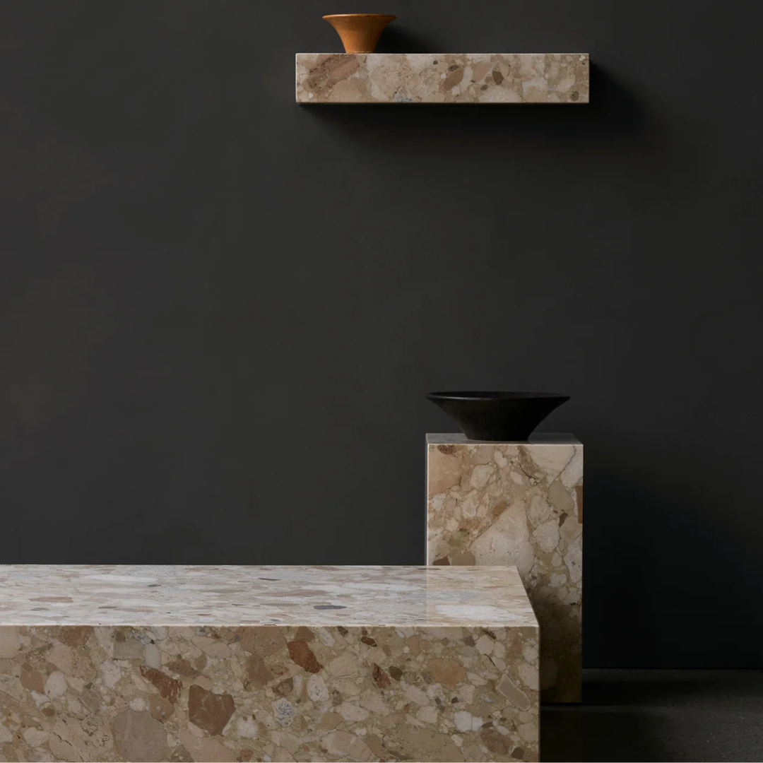 Met de Plinth collectie wilde Norm Architects hulde brengen aan de schoonheid van marmer. Deze salontafel is net zo veelzijdig en tijdloos als de andere bijzettafels in deze collectie. De tafel is handgemaakt in een kleine studio in Portugal. Alle onderdelen worden met de hand geassembleerd, zodat de patronen in het marmer mooi bij elkaar passen.